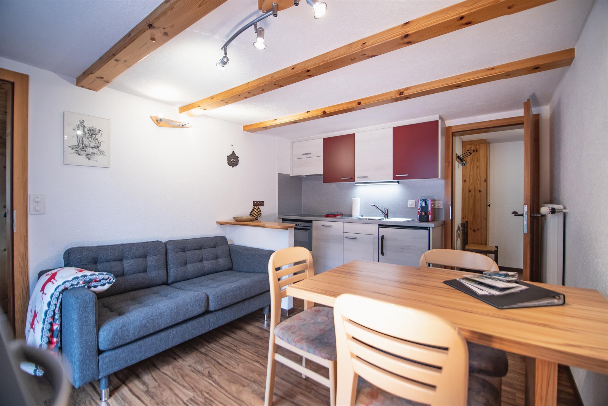 Unsere Ferienwohnungen sind gemütlich und komfortabel eingerichtet und bieten einen Balkon mit herrlichem Blick auf die beeindruckenden Saaser Berge. Jede Wohnung ist mit modernen Annehmlichkeiten ausgestattet, darunter ein Geschirrspüler, Wasserkocher, eine Kapselkaffeemaschine (Delizio), ein Flachbild-Kabelfernseher mit Saas-Infokanal, Radio, W-LAN, Haartrockner sowie Handtücher, Badetücher, Küchentücher und Bettwäsche. Auf Wunsch stellen wir Ihnen zusätzlich einen Toaster, eine Mikrowelle oder sogar ein Raclette-Öfchen zur Verfügung. Eine Waschmaschine kann auf Anfrage ebenfalls genutzt werden.