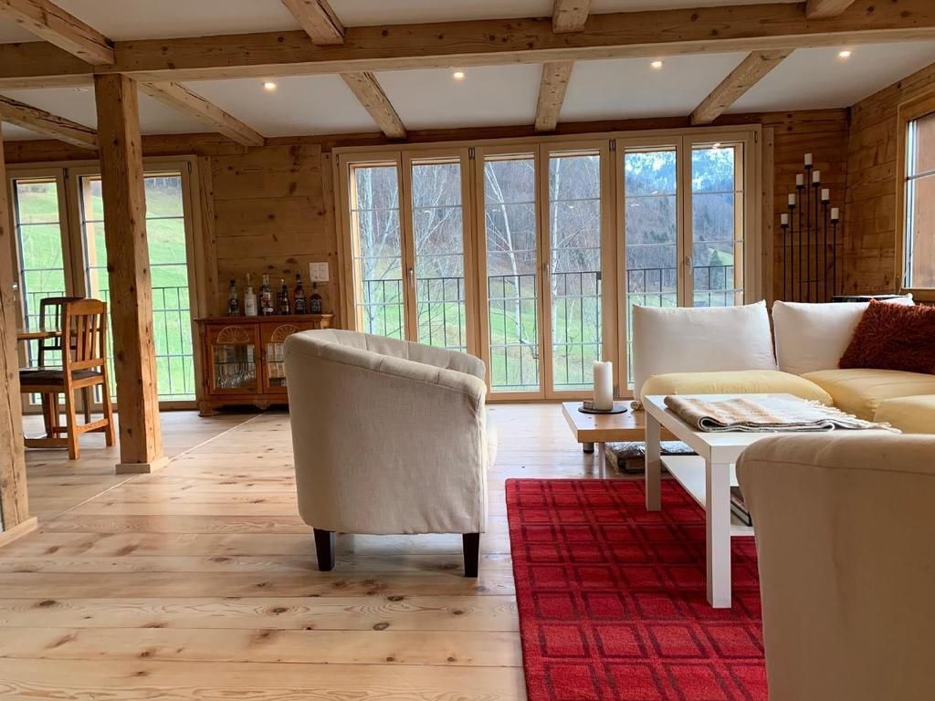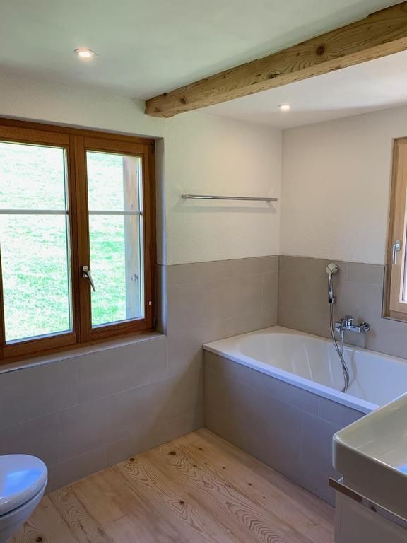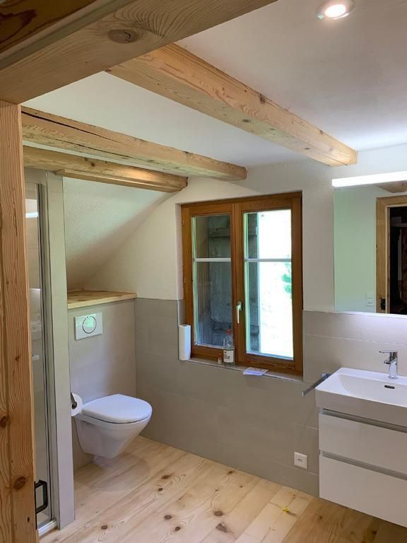 Das majestätisch über dem Dorf gelegene Wohnhaus wurde im 2019 mit viel Liebe zum Detail und der alten Bausubstanz aufwendig renoviert. Gastgeber sind die Geschwister Ott. Total 165 m2 Wohnfläche. Grosszügiges lichtdurchflutetes Wohn/Esszimmer mit Kaminofen und Südwest-Balkon (8m2). Offene Küche mit Ausgang zum Morgensitzplatz (8m2) und Abgang zur grossen Terrasse. 5 Schlafzimmer, Bad/WC und Dusche WC. Im Kellergeschoss gedeckter Hauseingang mit Garderobe, Ablageflächen, Waschmaschine und WC.