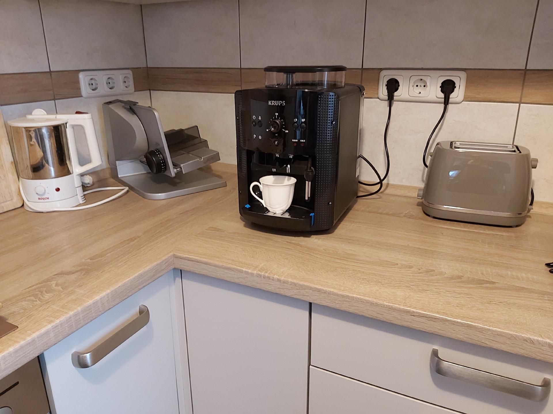Kochen: Backofen; Herd; Kaffeemaschine; Kühlschrank; Spülmaschine; Tiefkühlschrank; Toaster; Wasserkocher