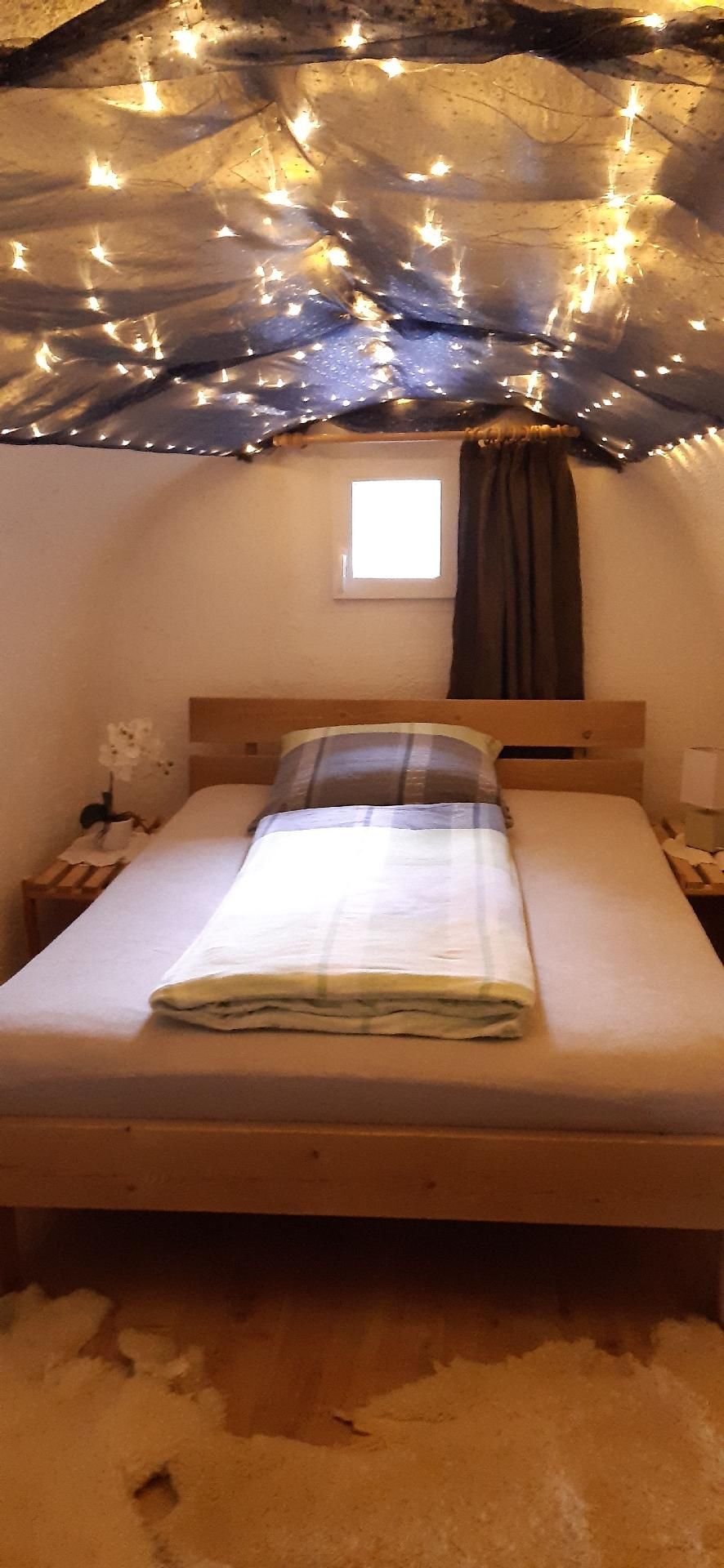 Innen bietet unsere ca. 60 m² große Ferienwohnung alles, was das Herz begehrt. Sie ist perfekt auf die Bedürfnisse von 1-2 Erwachsenen, optional mit einem Kleinkind bis 3 Jahre, ausgerichtet, bietet jedoch durch die komfortable Schlafcouch im Wohnzimmer und das abenteuerliche „Hobbit“-Zimmer für die Kleinen bis 12 Jahre, Platz für bis zu vier Personen. Die Wohnung verfügt über ein geräumiges Schlafzimmer mit einem 1,80 x 2,00 m großen Doppelbett, eine gemütliche Wohnstube mit Essecke, eine vollausgestattete Küche sowie ein herrliches Badezimmer, das im Morgenlicht erstrahlt und eine große Badewanne neben einer separaten Dusche bietet.