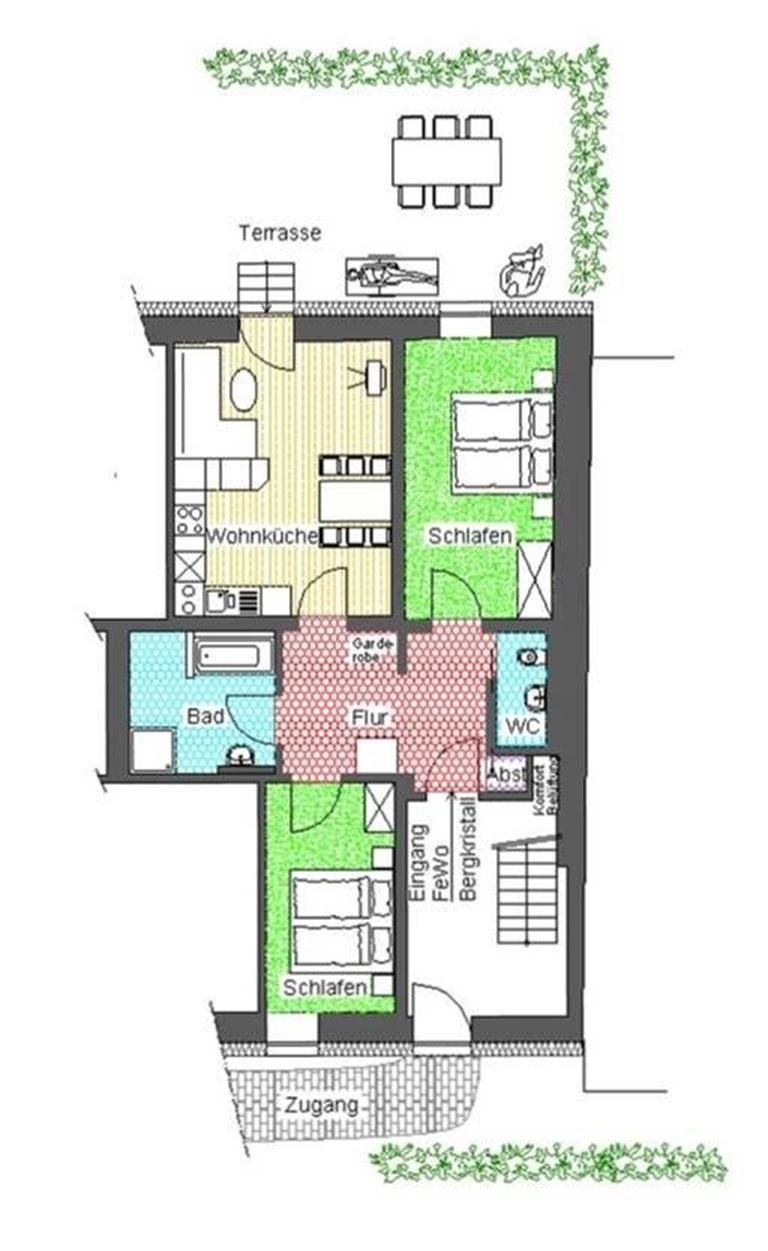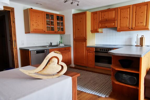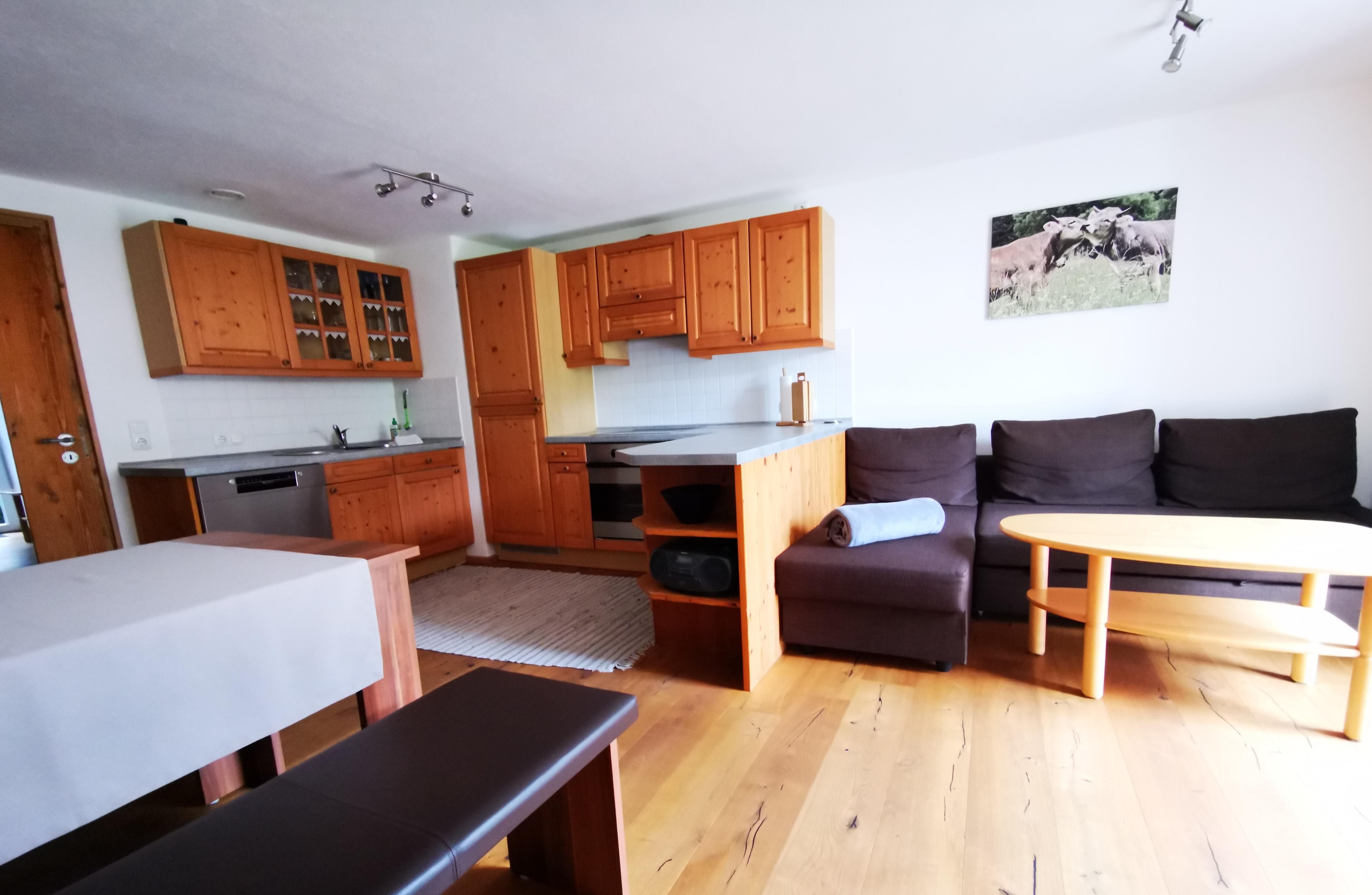 Unsere geräumige 70qm große Ferienwohnung, verfügt über eine große Wohnküche mit gemütlichem Essbereich. Auf dem ausziehbaren Sofa können sie Ihre Seele baumeln lassen. Die Eicheholzböden runden den Flair eines gemütlichen zuHause rundum ab. Durch die kontrollierte Wohnraumbelüftung erleben Sie ein optimales Wohnklima und sie finden in den zwei getrennte Schlafzimmer erholsamen Schlaf. Daher ist die Wohnung auch für Allergiker bestens geeignet.