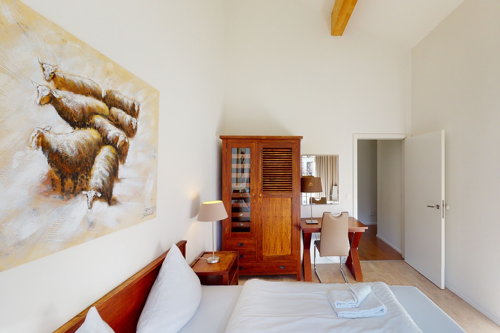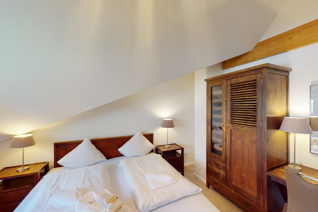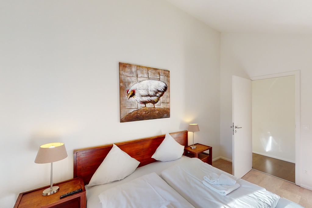 Die Ferienwohnung verfügt über3 Schlafzimmer mit je 2 Einzelbettenein Badezimmer mit Dusche, Whirlpool-Badewanne, Toilette, Lavabo und Saunaeine separate Toilette mit Lavaboeine separate Dusche mit Lavaboeine komplett ausgestattete Küche mit Nespresso-Kapselmaschineein Balkon mit atemberaubender SeesichtInneneinrichtung & Technik