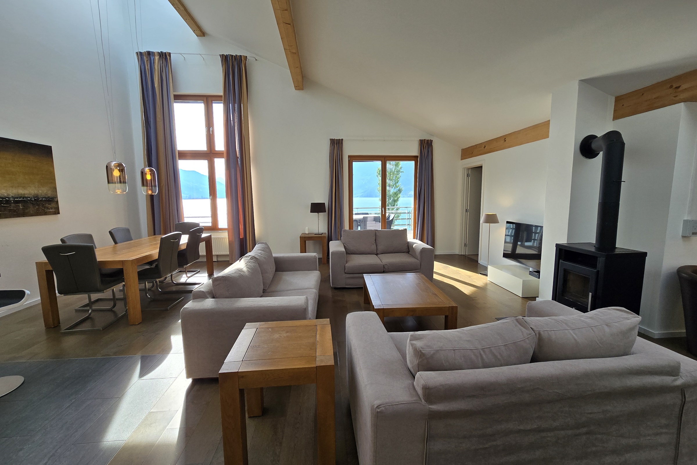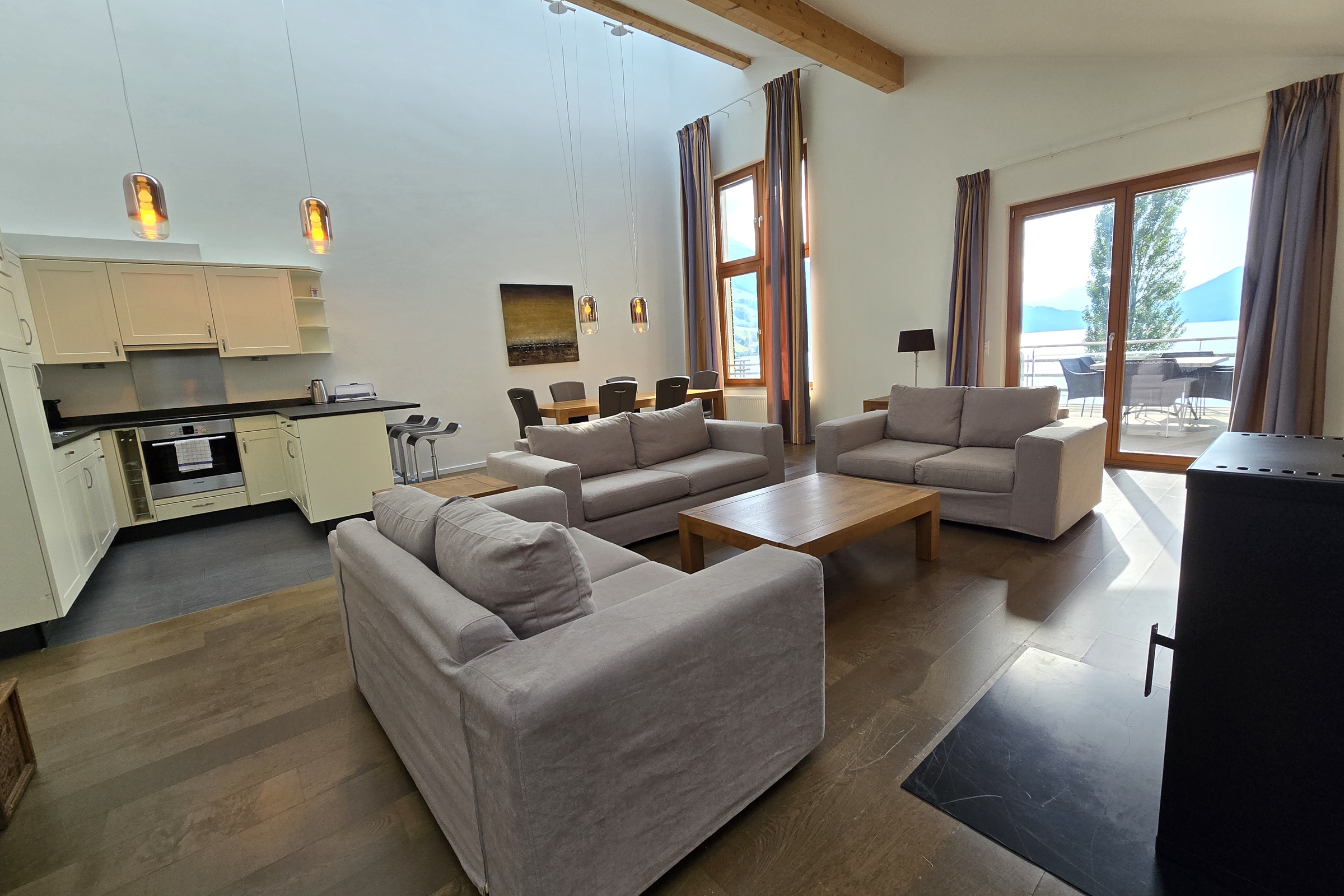 Walensee House & Apartments - direkt am Walensee Zuhause ist, wo man sich wohlfühlt und gut behandelt wird. Die Lage am Walensee ist atemberaubend und bietet einen unglaublichen Blick auf die majestätischen Churfirsten oberhalb des Walensees. Auf dem Areal des Resort Walensee befindet sich ein Restaurant, ein Café und ein Sportgeschäft mit einer breiten Auswahl an Sportgeräten, Kleidung und Accessoires. Nicht zu letzt auch in wenigen Schritten ist die Gondelbahn SeeJet erreichbar, welche Sie zum Ski-, Bike- und Wandergebiet Flumserberg befördert. Im Sommer lädt auch nach einer Wanderung in den Bergen der schöne Strand am Walensee zum Baden und Verweilen ein. So ist die gewünschte Ferienwohnung für Ruhesuchende, Aktive, Geniesser aber auch Familien zum idealen Ausgangsort für ein paar Tage Urlaub. Gerne geben wir die Partnerschaft mit Tennisclub Terza bekannt. Alle Wohnungseigentümer und Gäste von Walensee House & Apartments kommen durch diese Partnerschaft in den Genuss während dem Aufenthalt in einem unserer Apartments, gratis Tennis spielen zu können. Details der einzelnen Ferienwohnungen 7x Comfort Apartment (4 - 6 Personen) mit Terrasse 5x Deluxe Apartment (4 - 6 Personen) mit Terrasse 5x Deluxe Penthouse (4 - 6 Personen) mit Terrasse 6x Penthouse Apartment (6 - 8 Personen) mit Terrasse Inneneinrichtung Die Ferienwohnungen verfügen alle über einen geräumigen, gemütlichen Wohnraum und eine komplett ausgestattete Küche.