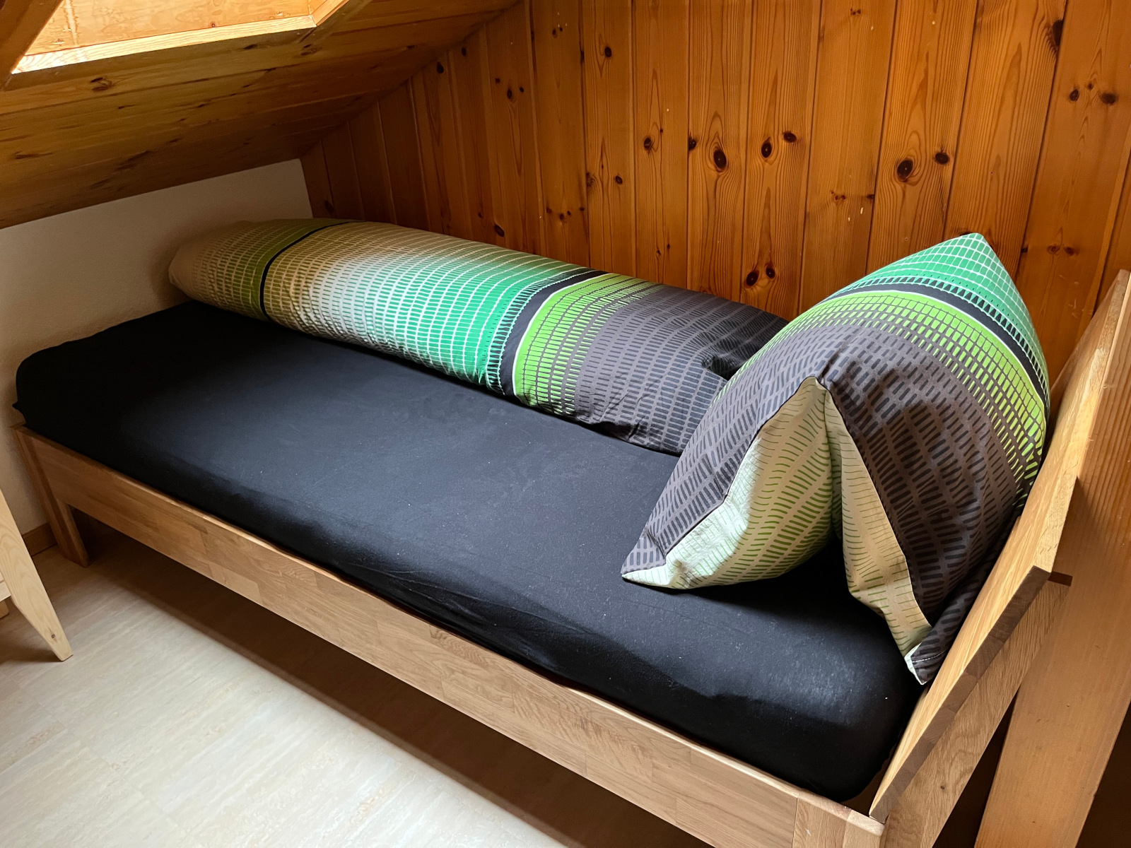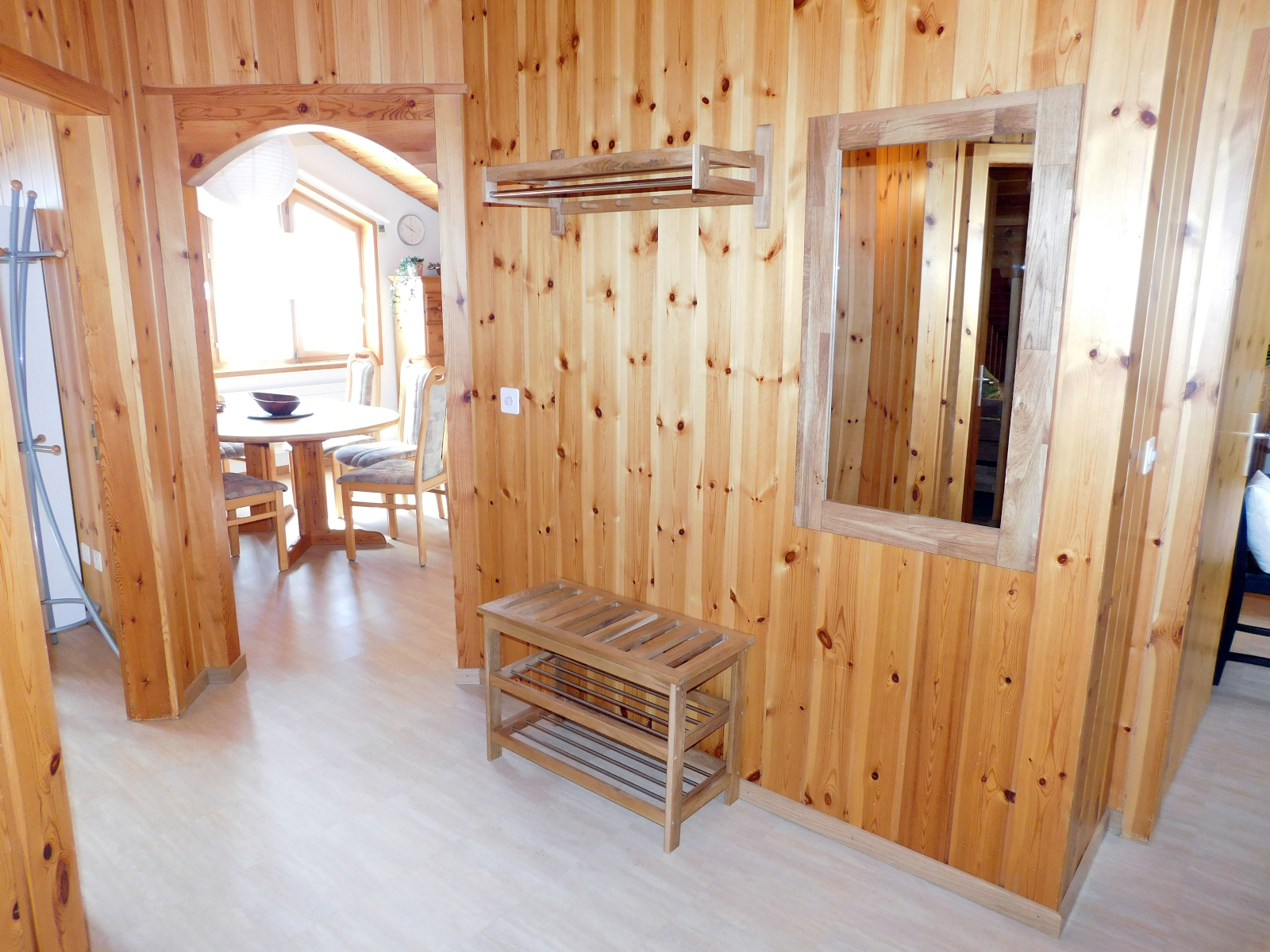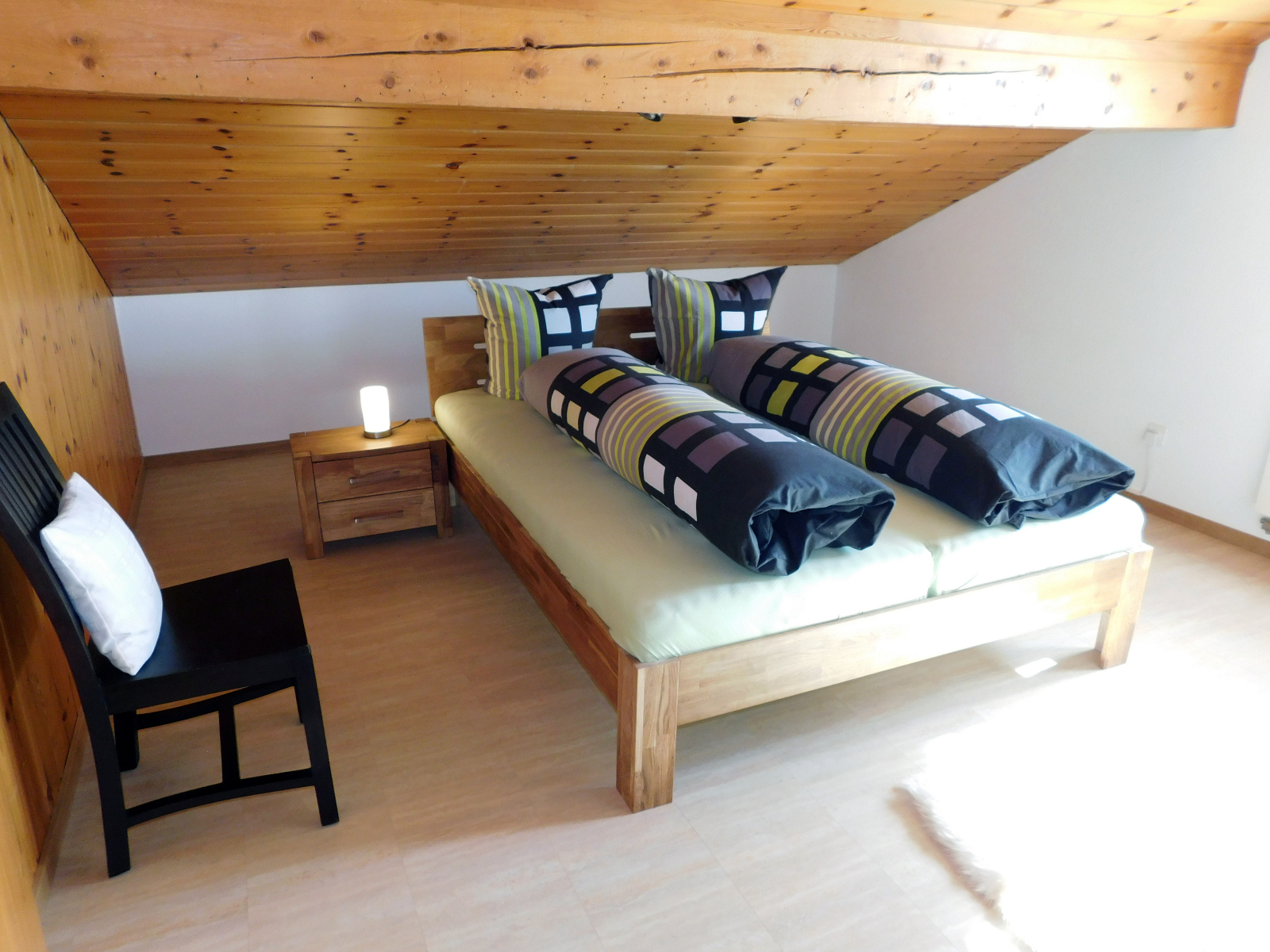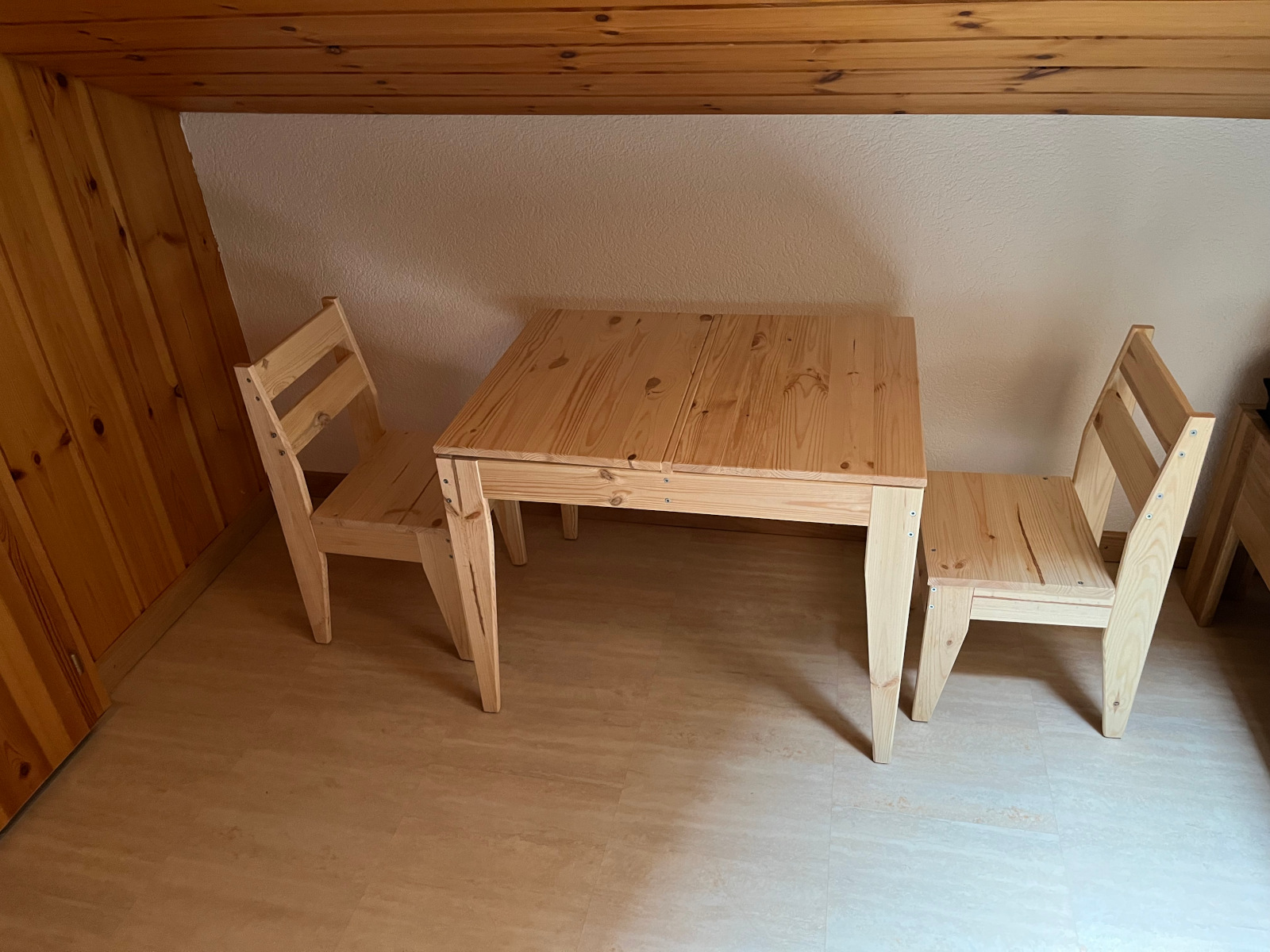 Gemütliches Wohnzimmer mit Esstisch und 5 Stühle, 1 Kindersitz (Trip-Trap), 1 Babysitz an Esstisch montierbar, ein grosses Sofa mit passendem Sessel, Salontisch. Fernseher (Satelliten-TV + Swisscom-TV) und WLAN. Diverse Brettspiele, einige Bücher + Lesematerial vorhanden. Küche: