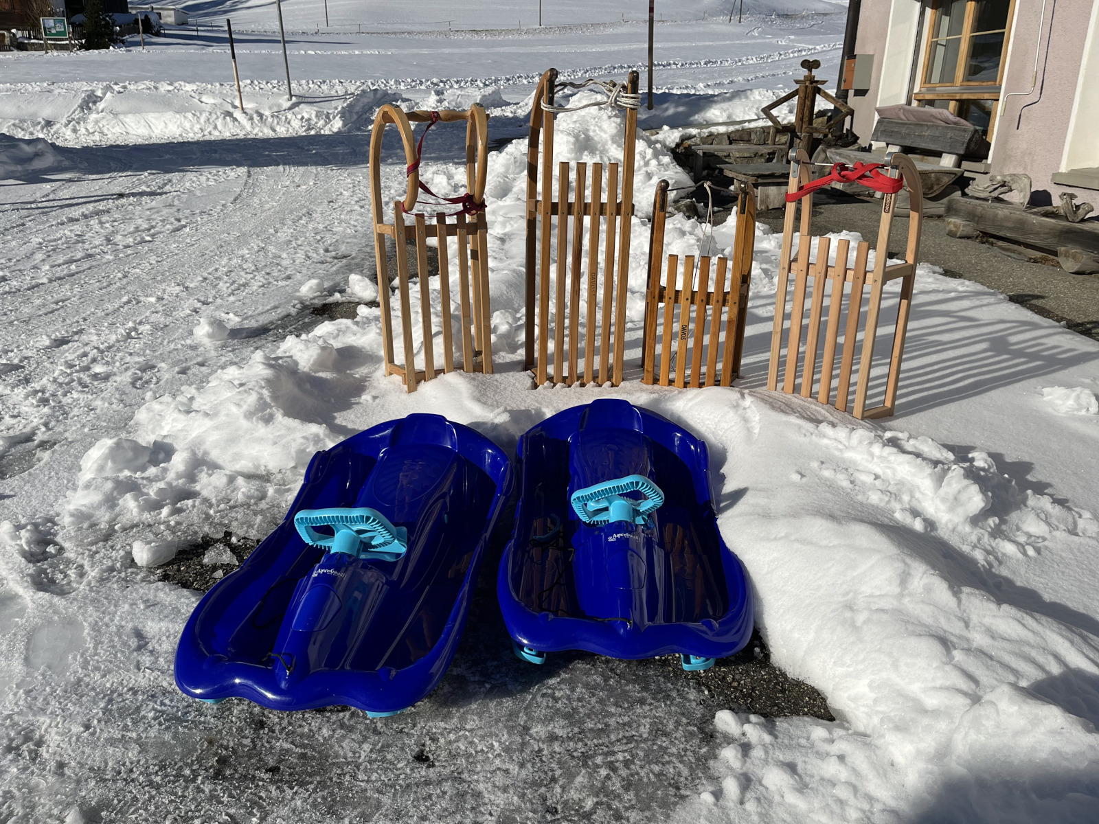 Im Winter ist die Langlaufloipe direkt vor der Haustür. Die Talstation der Bergbahnen sind in wenigen Autominuten oder mit dem kostenlosen Skibus erreichbar. Die Postautohaltestelle ist in wenigen Gehminuten erreichbar. Diverse Schlitten und Skibobs stehen im Winter ebenfalls zur Verfügung.