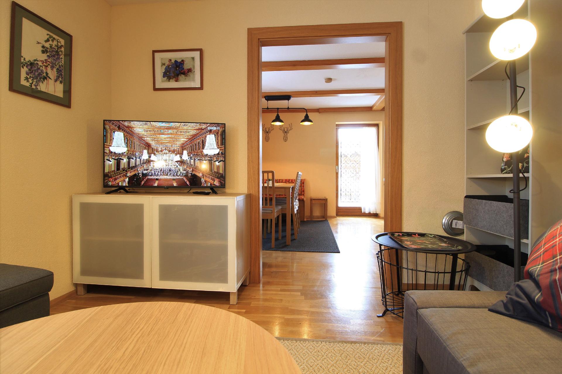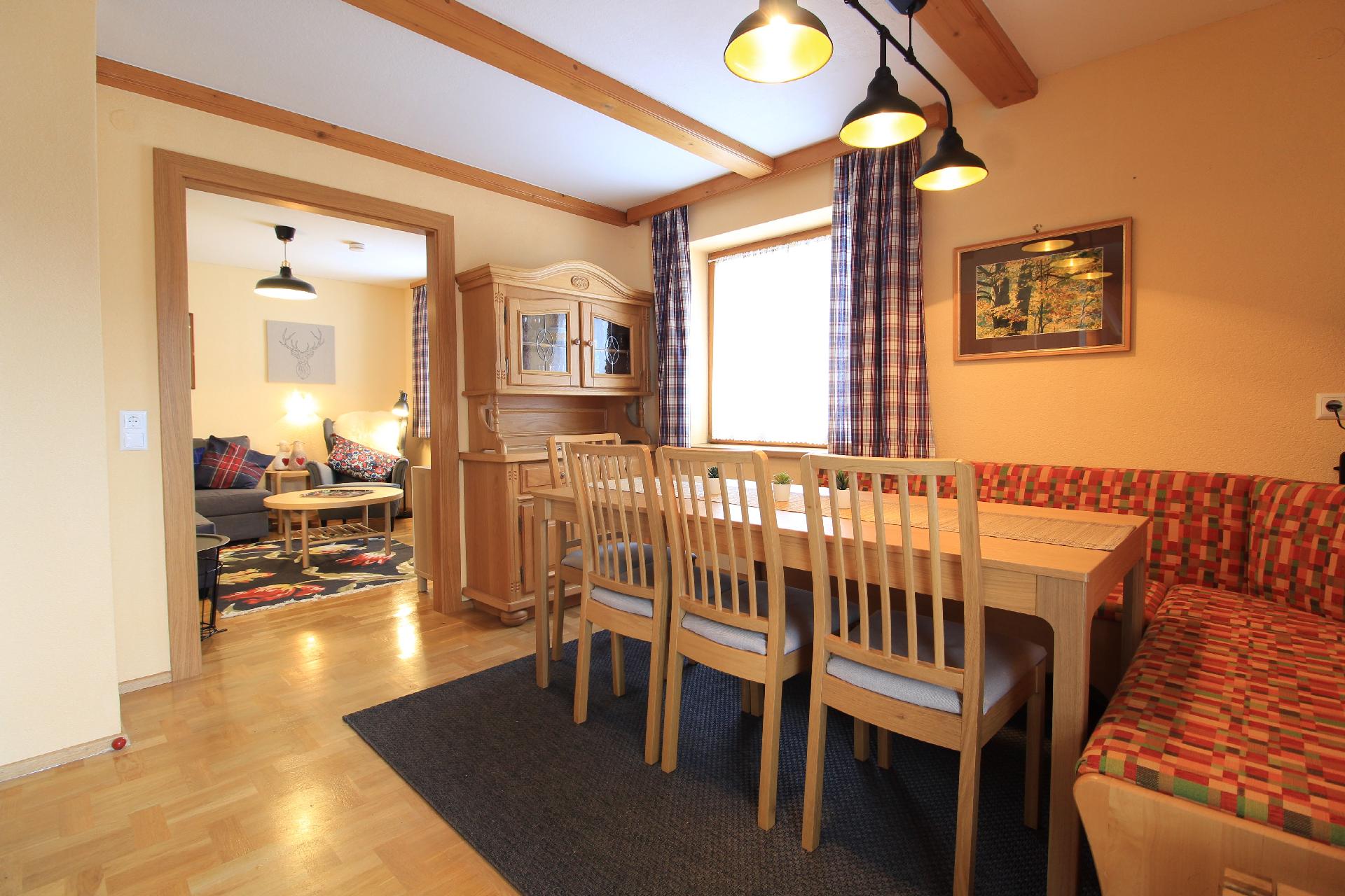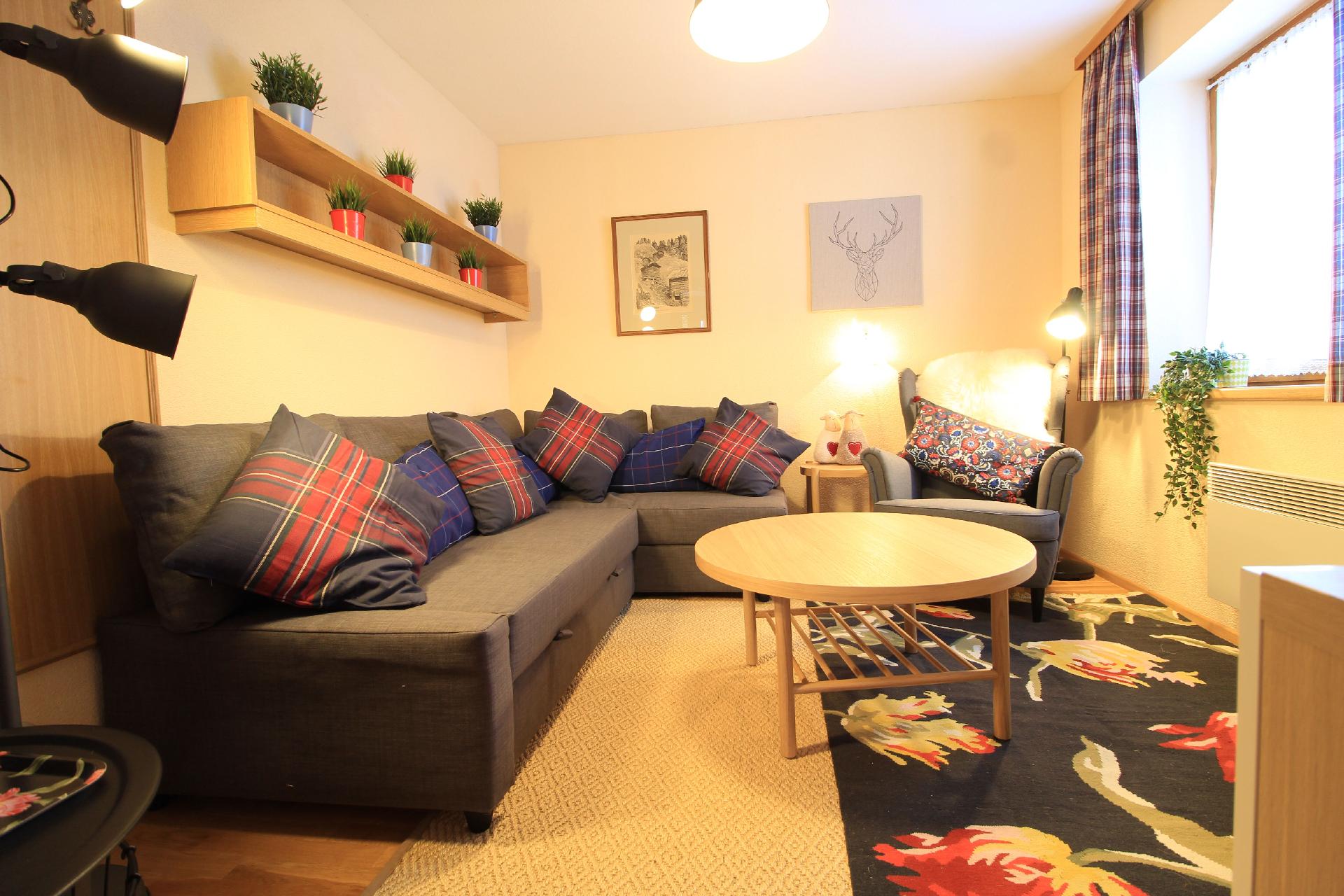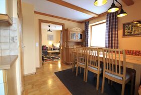 Genießen Sie im Außenbereich einen idyllischen, umzäunten Garten, der sich perfekt für erholsame Stunden in der Sonne eignet. Für Ihre Bequemlichkeit steht ein privater Parkplatz zur Verfügung. Außerdem können Sportgeräte wie Ski, Snowboards oder Fahrräder im dafür vorgesehenen Abstellraum sicher untergebracht werden – ideal, um nach einem aktiven Tag in der Natur alles griffbereit zu haben.