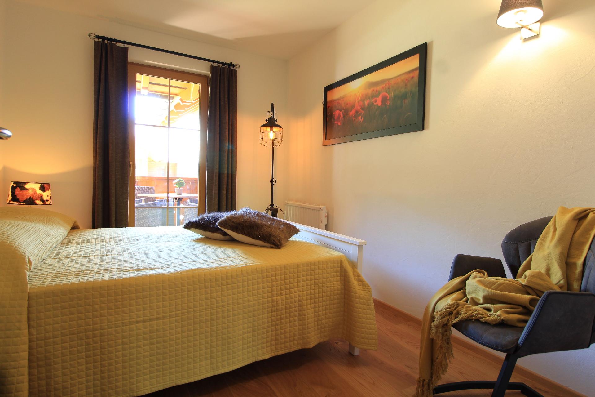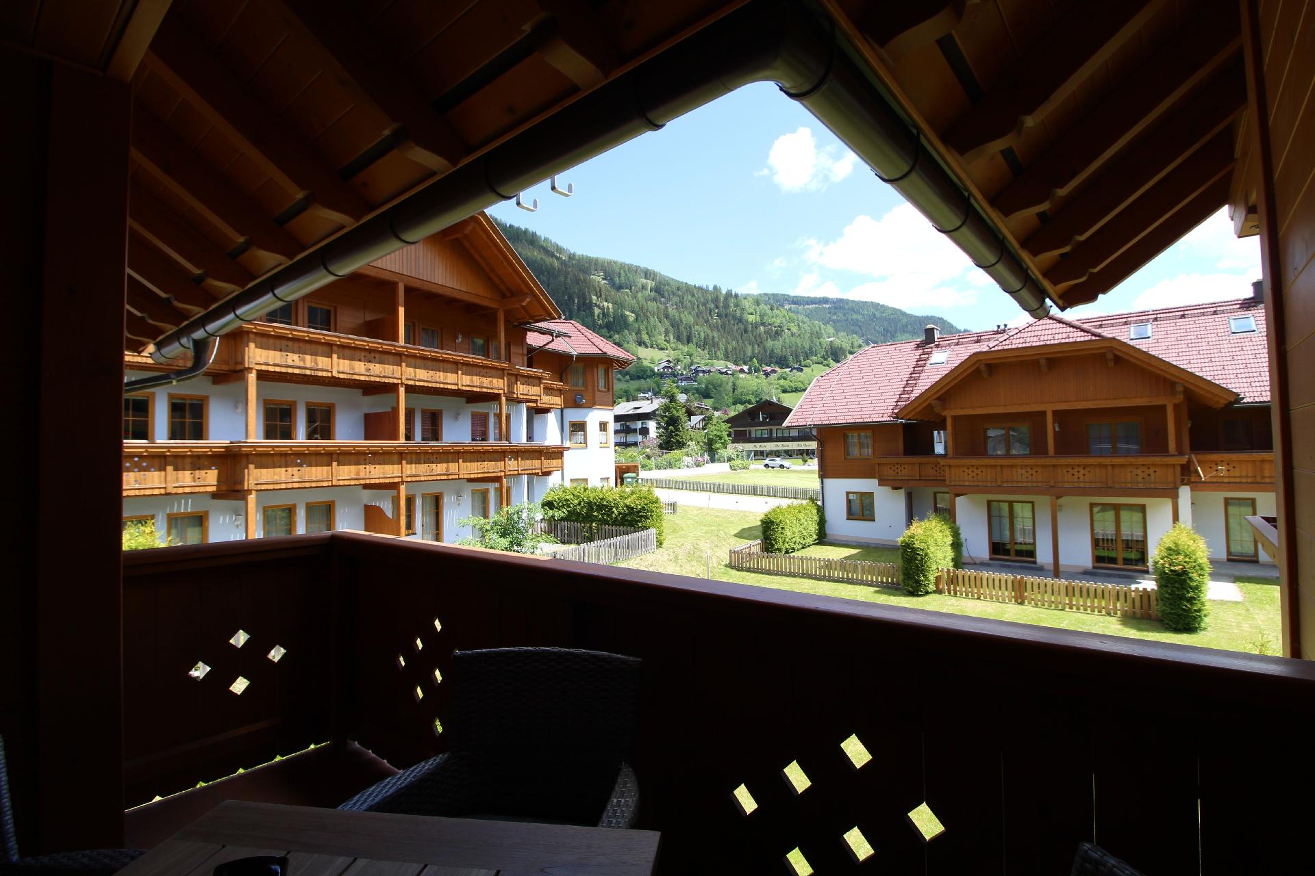 Der Außenbereich der Wohnung zeichnet sich durch eine charmante Terrasse aus, die mit Tisch und Stühnen ausgestattet ist – ein idealer Ort, um die Aussicht zu genießen oder den Tag bei einem Glas Wein ausklingen zu lassen. Für Gäste, die mit dem Auto anreisen, stehen zwei private Außenparkplätze direkt am Eingang zur Verfügung. Ein gemeinsam genutzter Skiraum bietet zudem ausreichend Platz für Ihre Wintersportausrüstung.