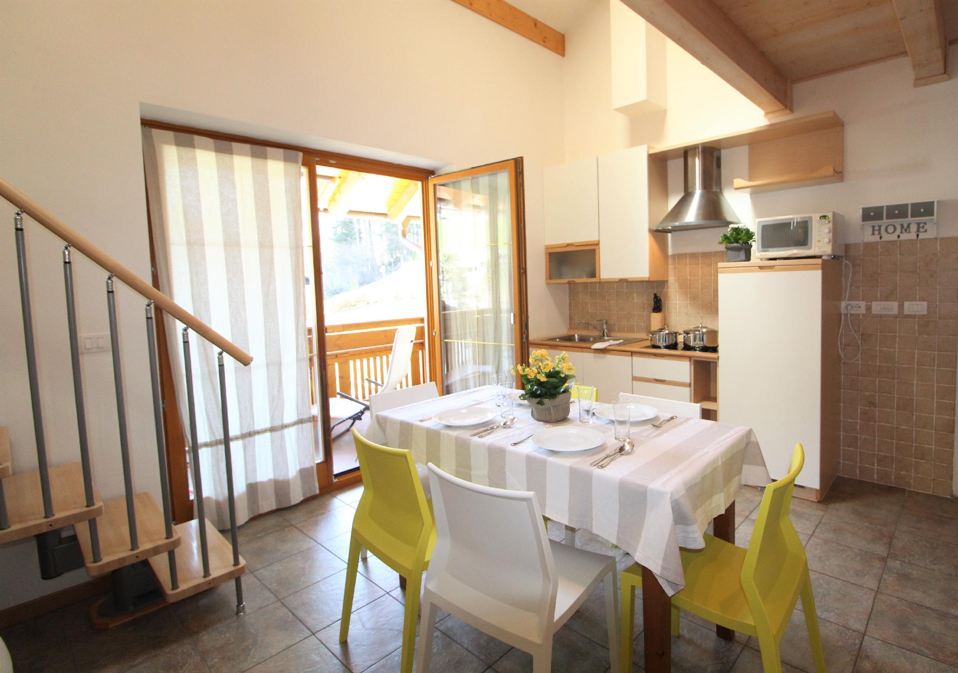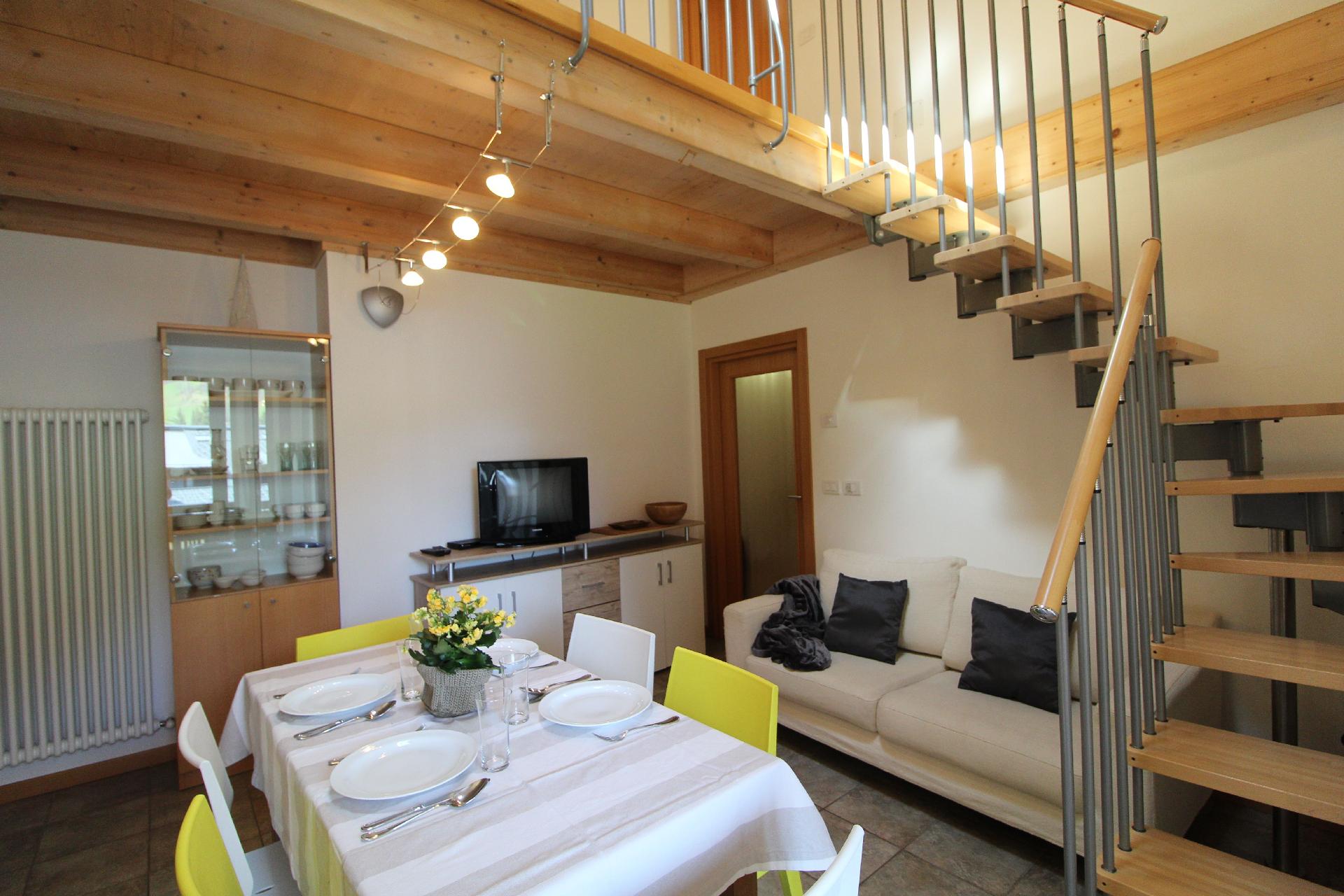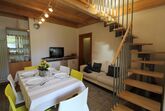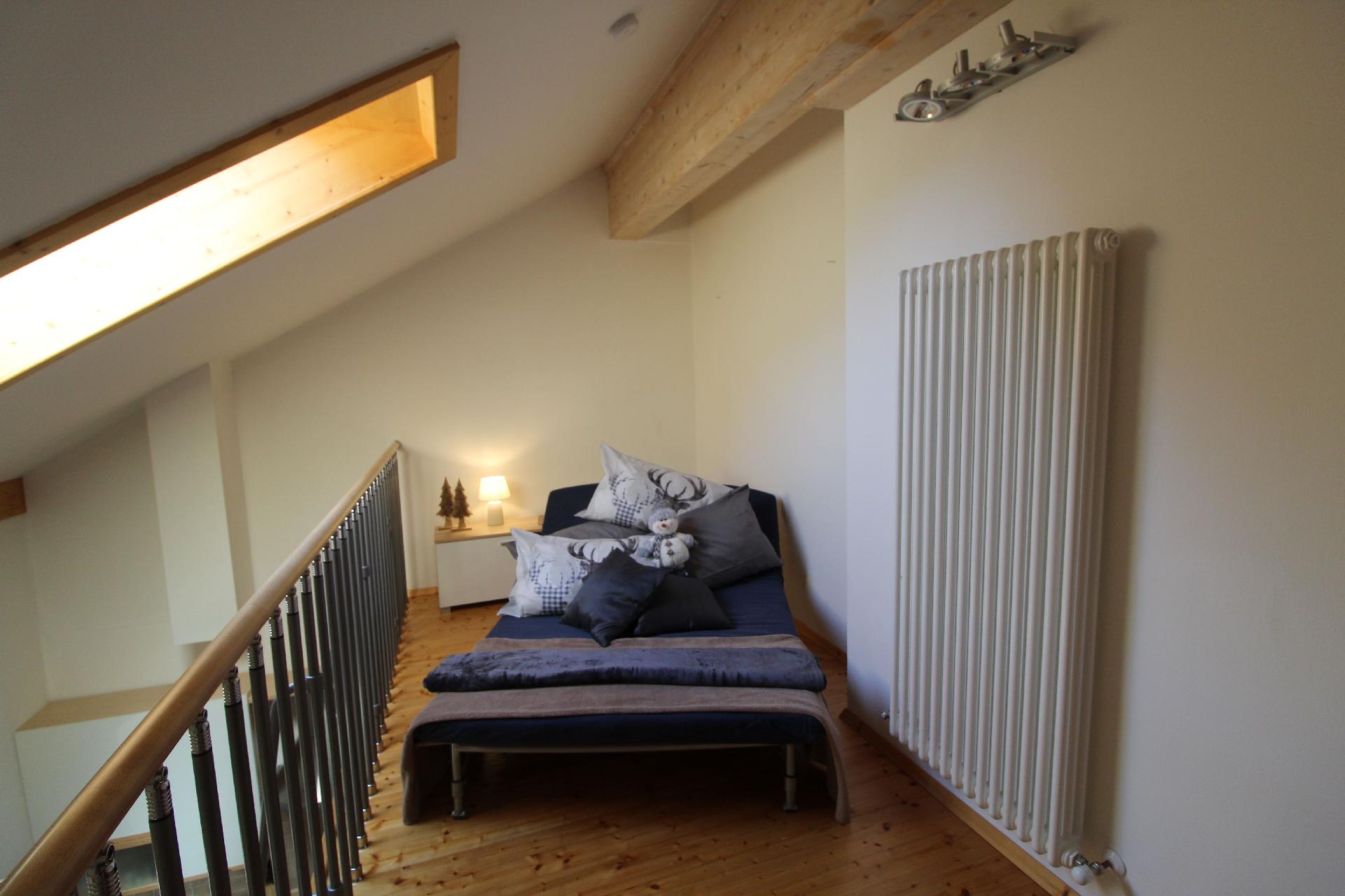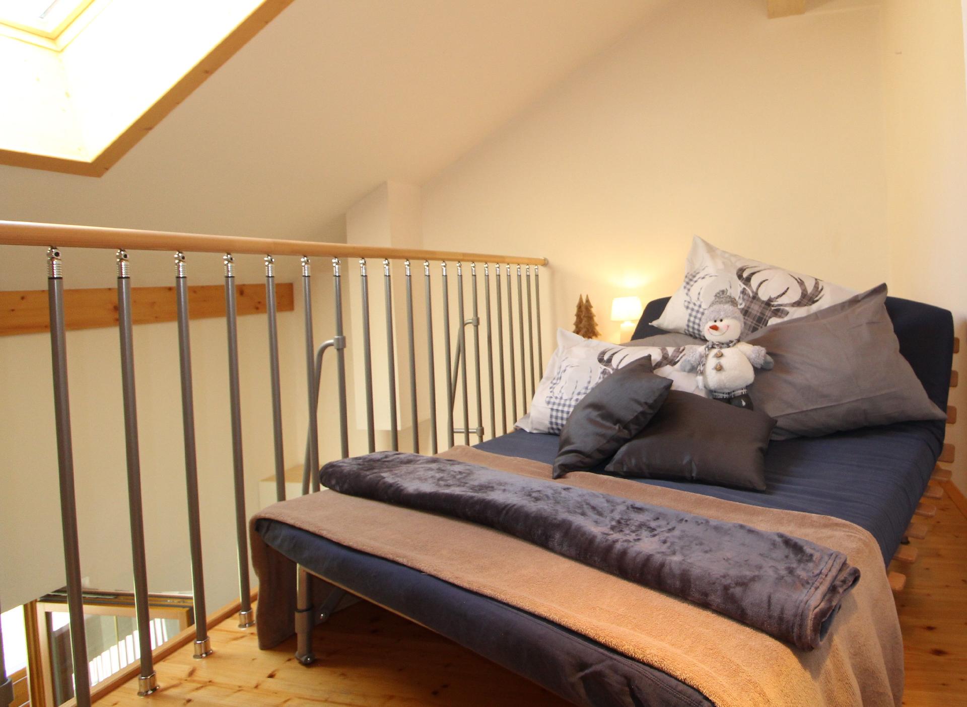 Innen erwartet Sie ein gemütliches und helles Ambiente, das sich auf zwei Ebenen erstreckt. Die Wohnung verfügt über ein komfortables Wohnzimmer mit angeschlossener Kochnische, die keine Wünsche offenlässt – inklusive Geschirrspüler. Das Highlight bildet der große, panoramische Balkon, der zum Verweilen einlädt. Es gibt ein Schlafzimmer mit Doppelbett und ein Badezimmer mit Dusche sowie ein auf das Wohnzimmer blickendes Zwischendeck, das über eine Treppe erreichbar ist und ein weiteres Schlafzimmer mit Doppelbett sowie ein separates WC bietet.