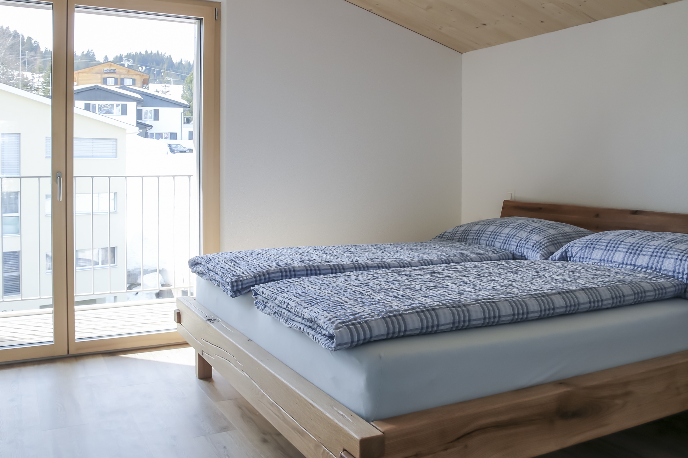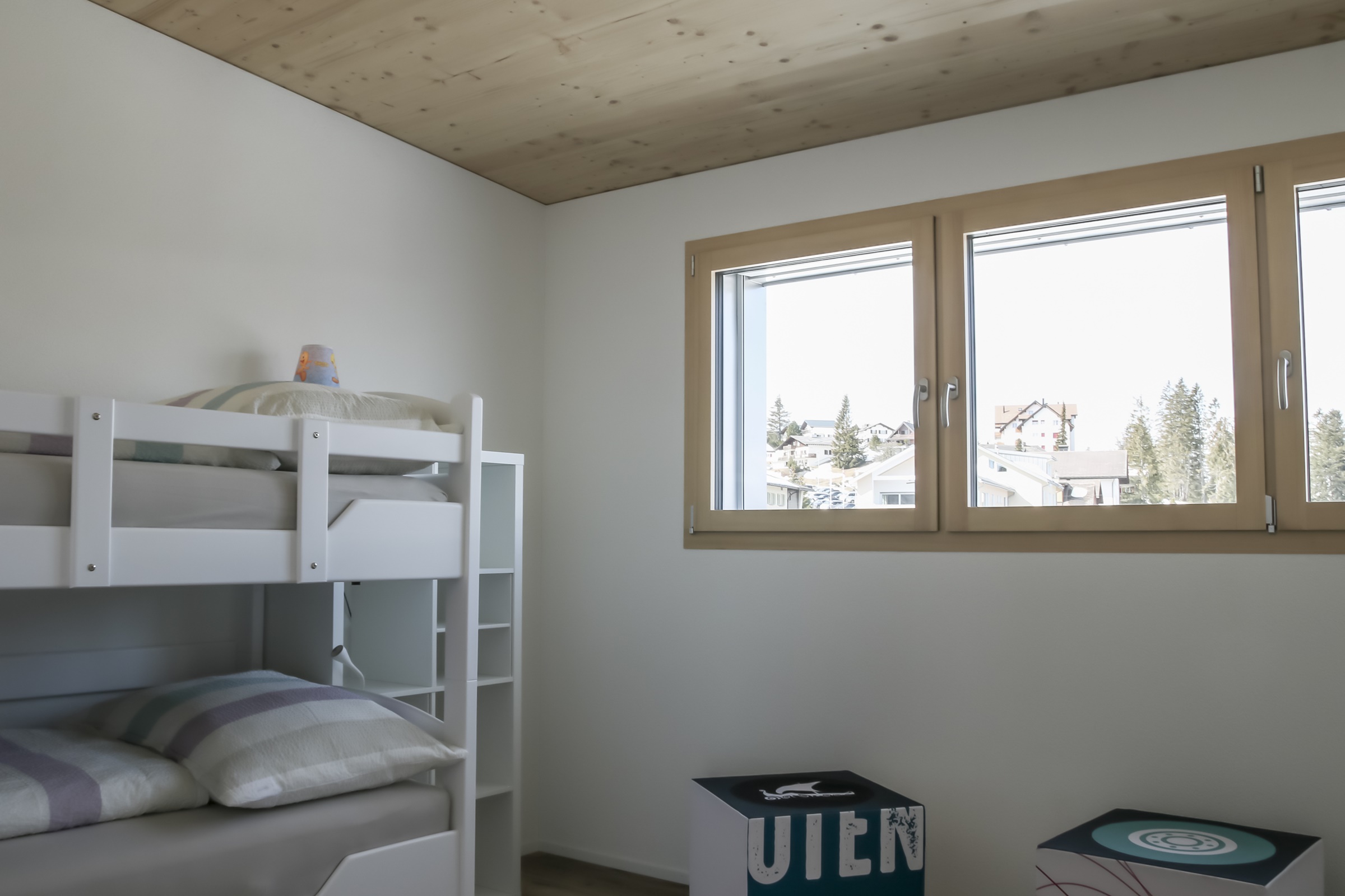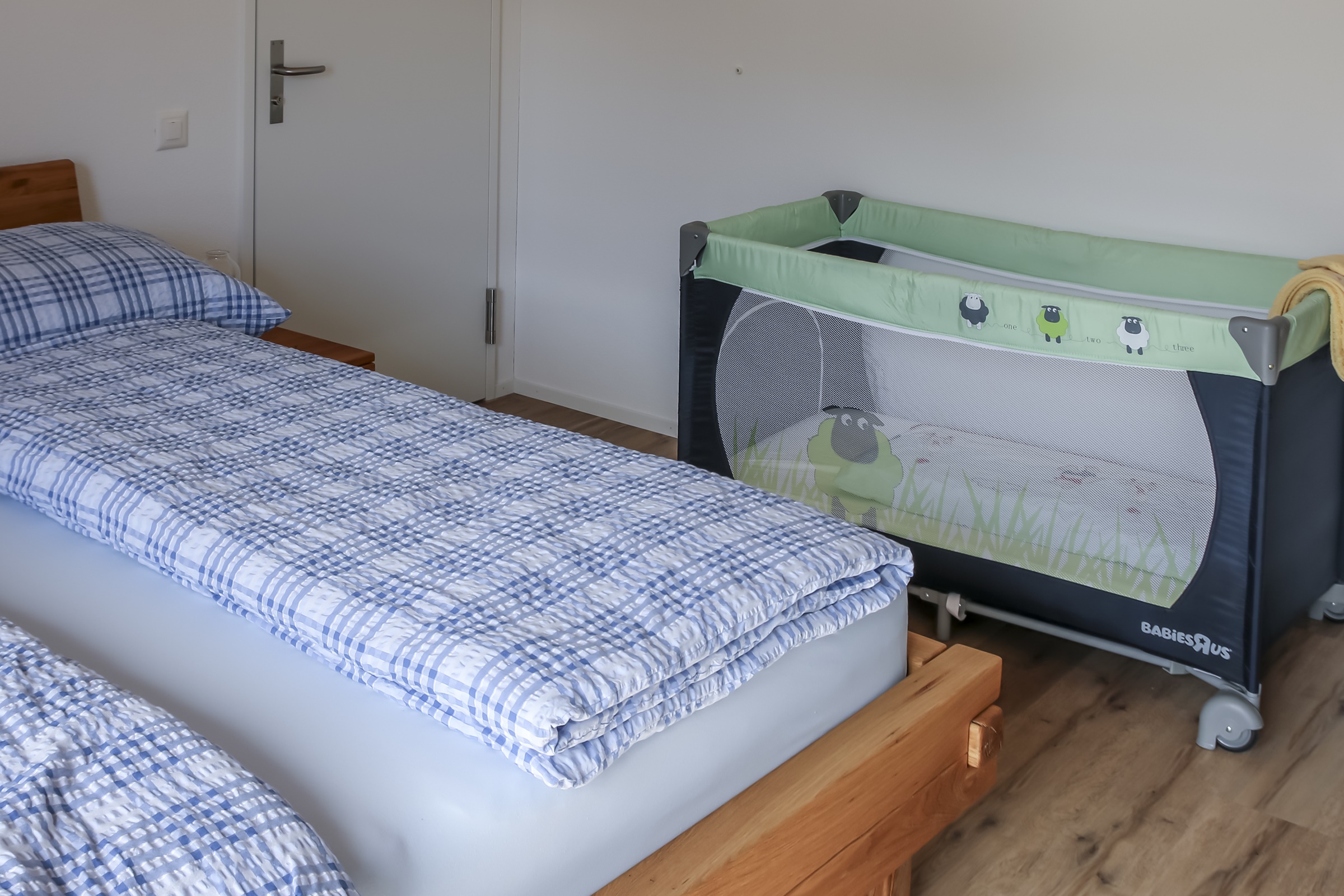 Die Dachwohnung verfügt über zwei Schlafzimmer, eines mit Doppelbett und genügend Platz für ein Babybett, sowie ein Zimmer mit Kajütenbett mit ausziehbarem Zusatzbett (3 Pers.). Die Betten sind angezogen. ein Badezimmer mit Badewanne/Dusche, WC und Lavabo ein Wohn-/Esszimmer Komplett ausgestattete Küche mit Glaskeramik Herd, Combi Steamer, Kühlschrank mit Gefrierfach, Geschirrspüler, Nespresso Kaffeemaschine, Fonduegeschirr, Wasserkocher, Toaster, genügend Geschirr Inneneinrichtung & Technik