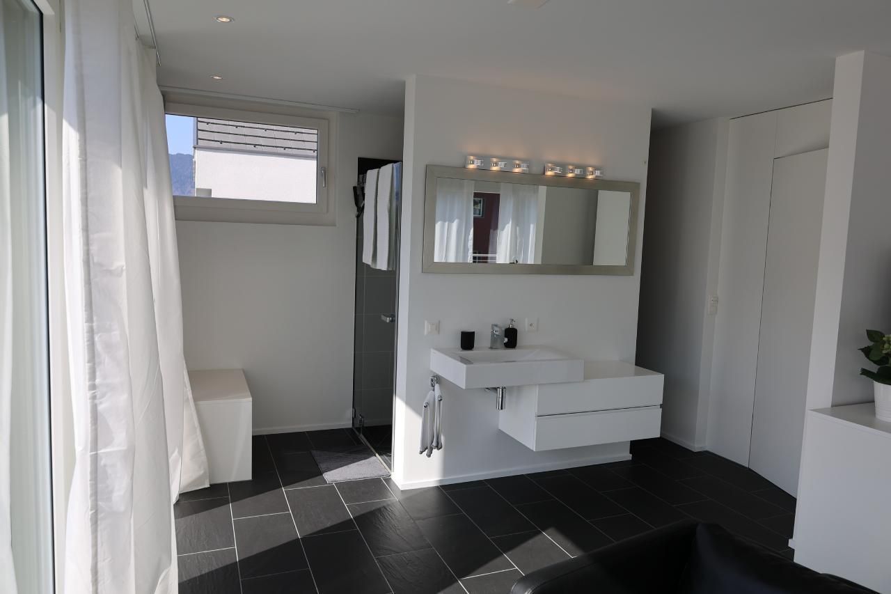 Ab 7 Personen haben Sie im Attikageschoss ein grosses Schlafzimmer mit Bad und zweitem Wohnzimmerbereich