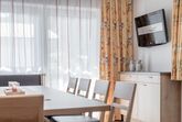 Im 1. Stock befinden sich 2 Doppelzimmer und 2 Dreibettzimmer mit Kabel-Flat-TV, Safe und Balkon sowie 4 Badezimmer mit Dusche/WC. Wohnraum mit großem Essbereich, Balkon, vollausgestattete Küche mit Spülmaschine, Ceranfeld, Mikrowelle mit Grillfunktion, Kaffeemaschine, Wasserkocher,... Im Tiefparterre Skiraum mit Schuhtrockner. Größe ca. 150 m²