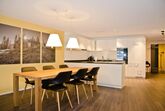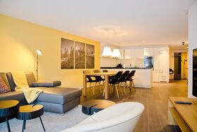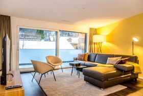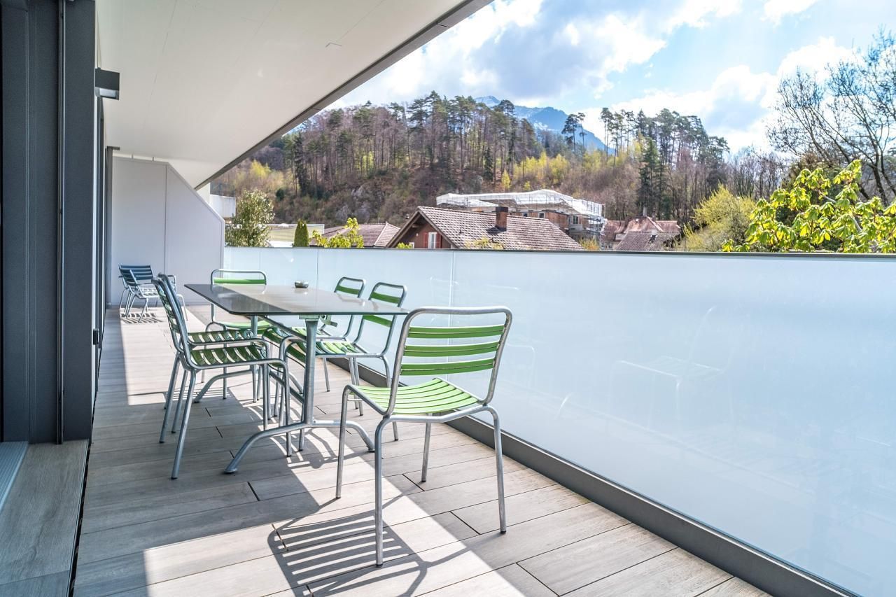 Moderne 3.5-Zimmerwohnung für 4-5 Personen in Interlaken – an zentraler Lage mit top Verkehrsanbindung. Die 3.5-Zimmerwohnung im 1. Stock bietet auf 120m2 zwei Doppelschlafzimmer, ein Sofabett im Wohnzimmer für eine Person, ein Badezimmer mit Dusche und WC sowie ein Badezimmer mit Badewanne und WC. Die moderne, hochwertige und top ausgestattete Küche öffnet sich zum grosszügigen Wohn- und Essbereich mit einem Balkon, der eine tolle Bergsicht bietet.