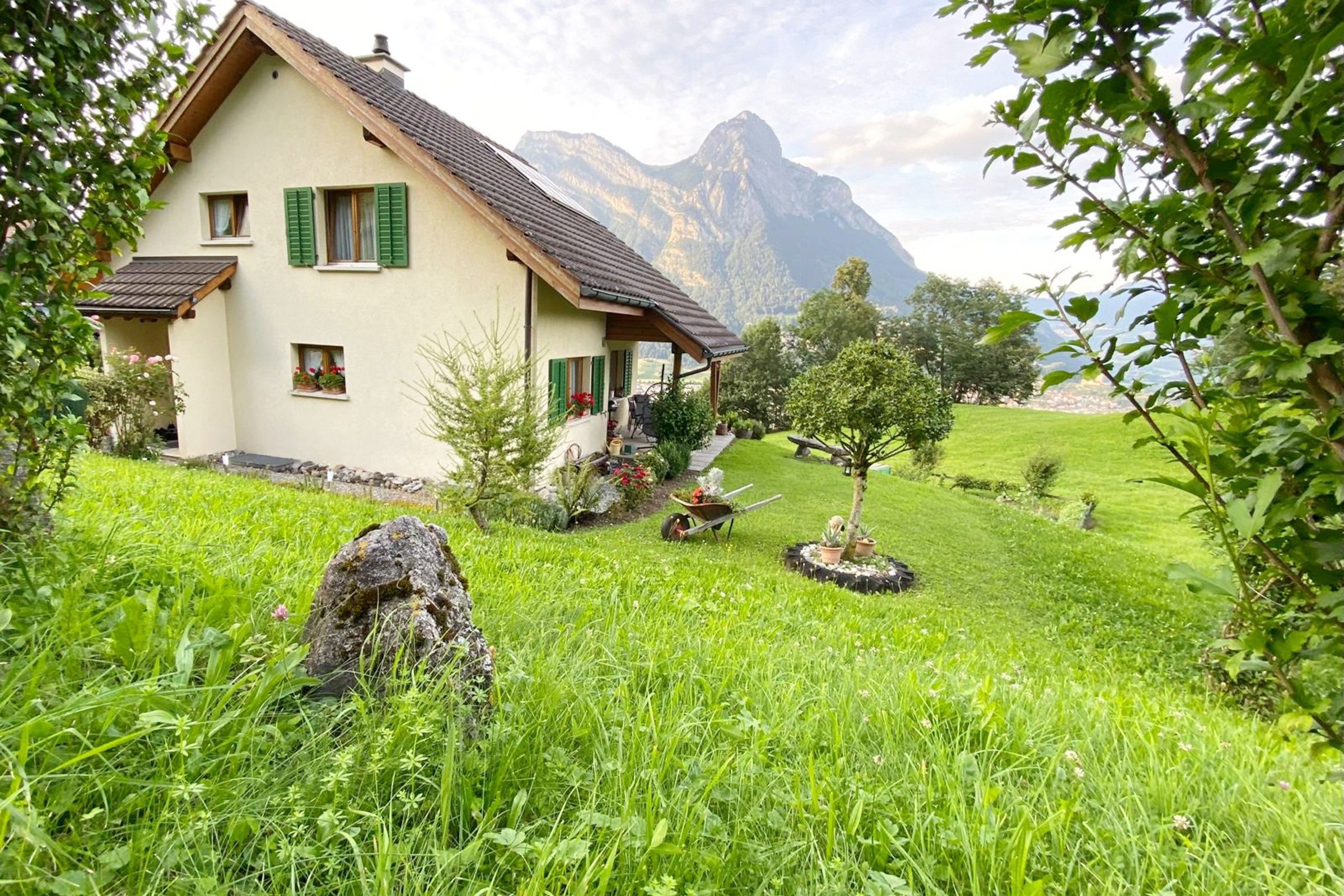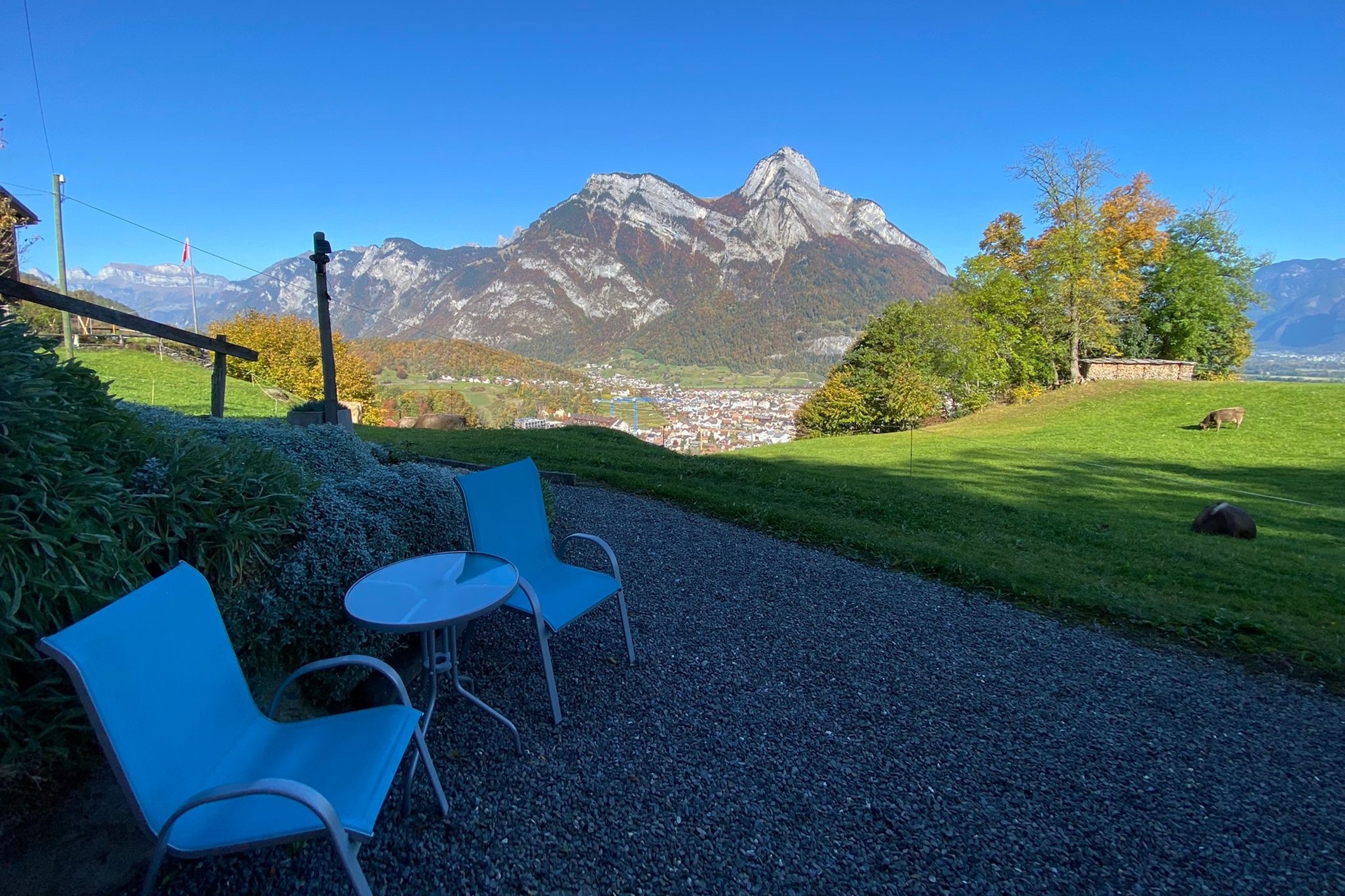 Herzlich willkommen in unserer schönen Ferienunterkunft! Das komplett möblierte Studio im Erdgeschoss von Lueg ins Land liegt oberhalb des schönen Dorfes Mels in der Ferienregion Heidiland. Herrliche Aussicht auf die umliegende Bergwelt. Zur Wohnung gehört ein Gartensitzplatz mit Grillmöglichkeit sowie ein zusätzlicher Abstellraum und ein Parkplatz ist vorhanden. Ruhesuchende finden in der Umgebung ein ideales Plätzchen zum Entspannen. Sitzgelegenheiten auf den Ruhebänken von Mels Tourismus laden zum Verweilen ein. Die Antonius Kapelle Butz befindet sich in unmittelbarer Nähe. Dieser eigenwillig gestaltete sakrale Bau birgt im Innern mit den Fresken von Ferdinand Gehr einen kleinen Kunstschatz. Wenn Sie mehr Abwechslung suchen, sind die Pizolbahnen in Wangs und das Thermalbad in Bad Ragaz schnell erreichbar. Im Sommer können Sie am Pizol wunderbare Wanderungen unternehmen, während im Winter zahlreiche Wintersportarten auf Sie warten. Das Thermalbad in Bad Ragaz bietet Ihnen Entspannung pur und ist der ideale Ort, um nach einem aktiven Tag zur Ruhe zu kommen. Unsere Ferienunterkunft befindet sich in der Nähe unseres Bauernhofes, der etwa 200 Meter entfernt liegt. Sie haben die Möglichkeit, einen Einblick in unser bäuerliches Leben und unsere Landwirtschaft zu erhalten. Ein besonderes Highlight ist es, bei einem Stallbesuch unsere Kühe und den Alltag auf dem Bauernhof hautnah zu erleben. Mit viel Liebe und Sorgfalt stellen wir unsere Milchprodukte her, die Sie auch gerne frisch kaufen können. Gesamtgrösse Ferienwohnung
