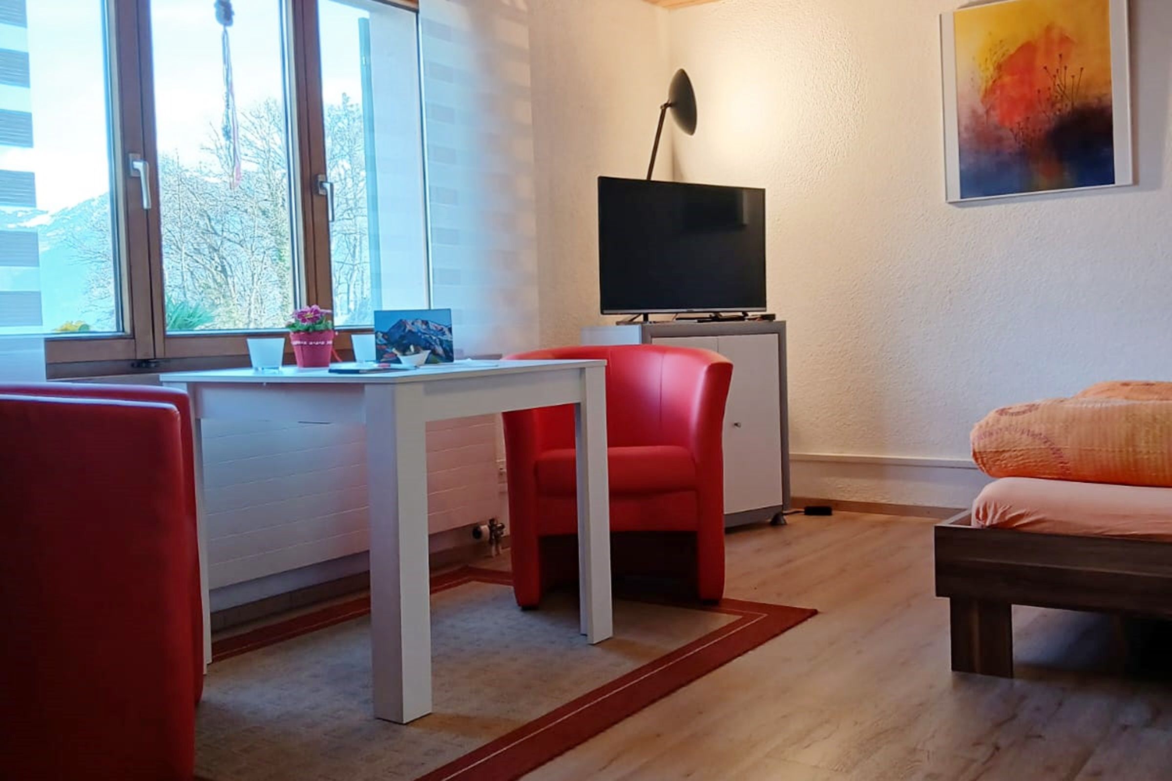 Das schöne und kleine Studio ist einfach und gemütlich eingerichtet. WLAN und TV Gerät vorhanden. Im Wohnzimmer befindet sich ein Radio.