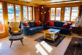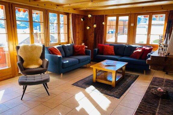 4-Zimmerwohnung im 2. Obergeschoss (122m2). 3 Schlafzimmer, 3 Badezimmer. Die gut eingerichtete Küche und das Wohnzimmer mit Cheminée laden zu gemütlichen Stunden ein. Das Inventar wurde im bergtypischen Chaletstil erneuert. Der grosse Balkon und die Sonnenterrasse bieten eine wunderschöne Sicht auf die umliegende Berg- und Gletscherlandschaft.