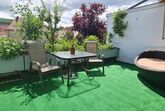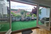 Vom Zimmer aus hat man Zugang zu der sehr großen und ruhigen Terrasse (ca. 18 qm) mit Markise. Die attraktive Begrünung sorgt für Urlaubsfeeling.