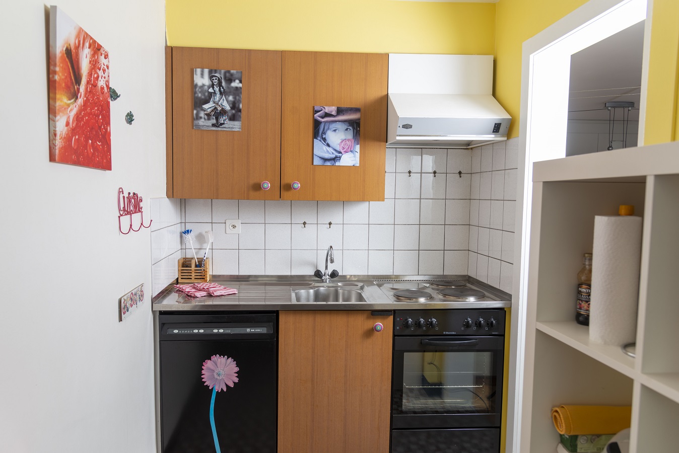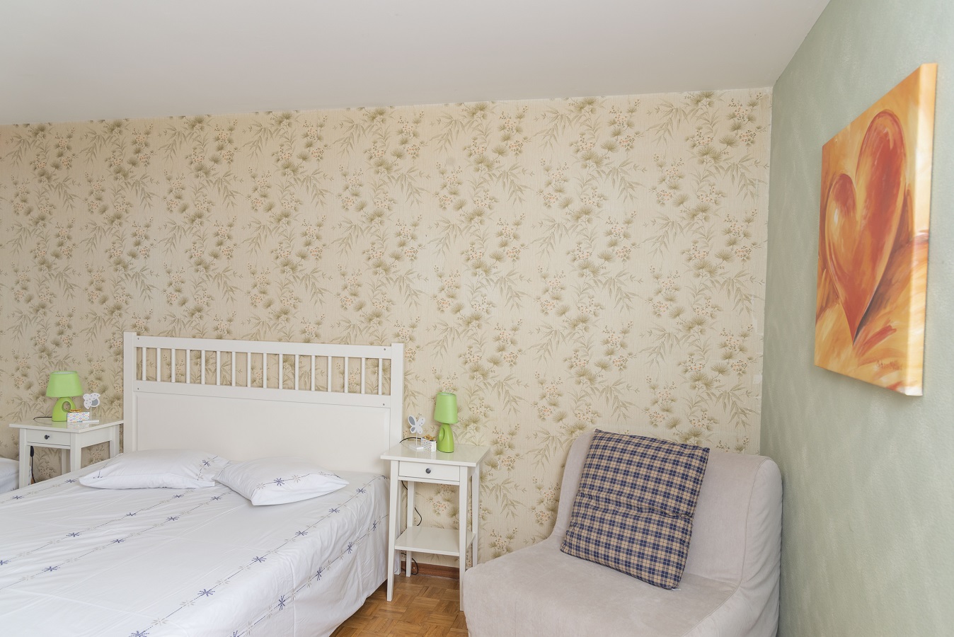 Zwei Zimmerwohnung (59 m2), für 5 Personen, die beinhaltet: ein Schlafzimmer (1 Doppelbett und 1 Einzelbett), ein Wohnzimmer mit 1 Schlafcouch für 2 Personen, TV-DVD (satellite), Radio-CD. Geschlossene, ganz ausgestattete Küche mit Spülmaschine, Kühlschrank, Backofen, Mikrowelle, Kaffemaschine. Badezimmer mit Badewanne/WC, Waschbecken.