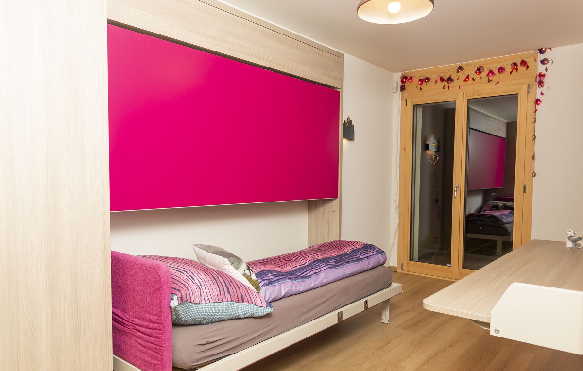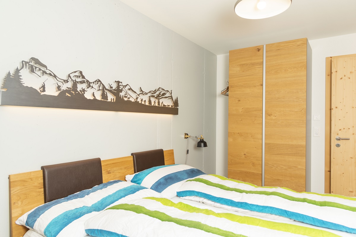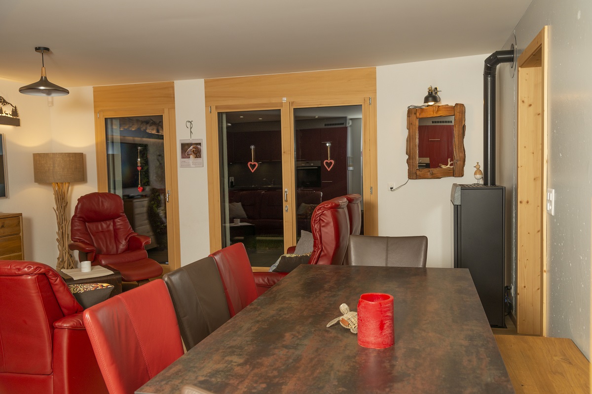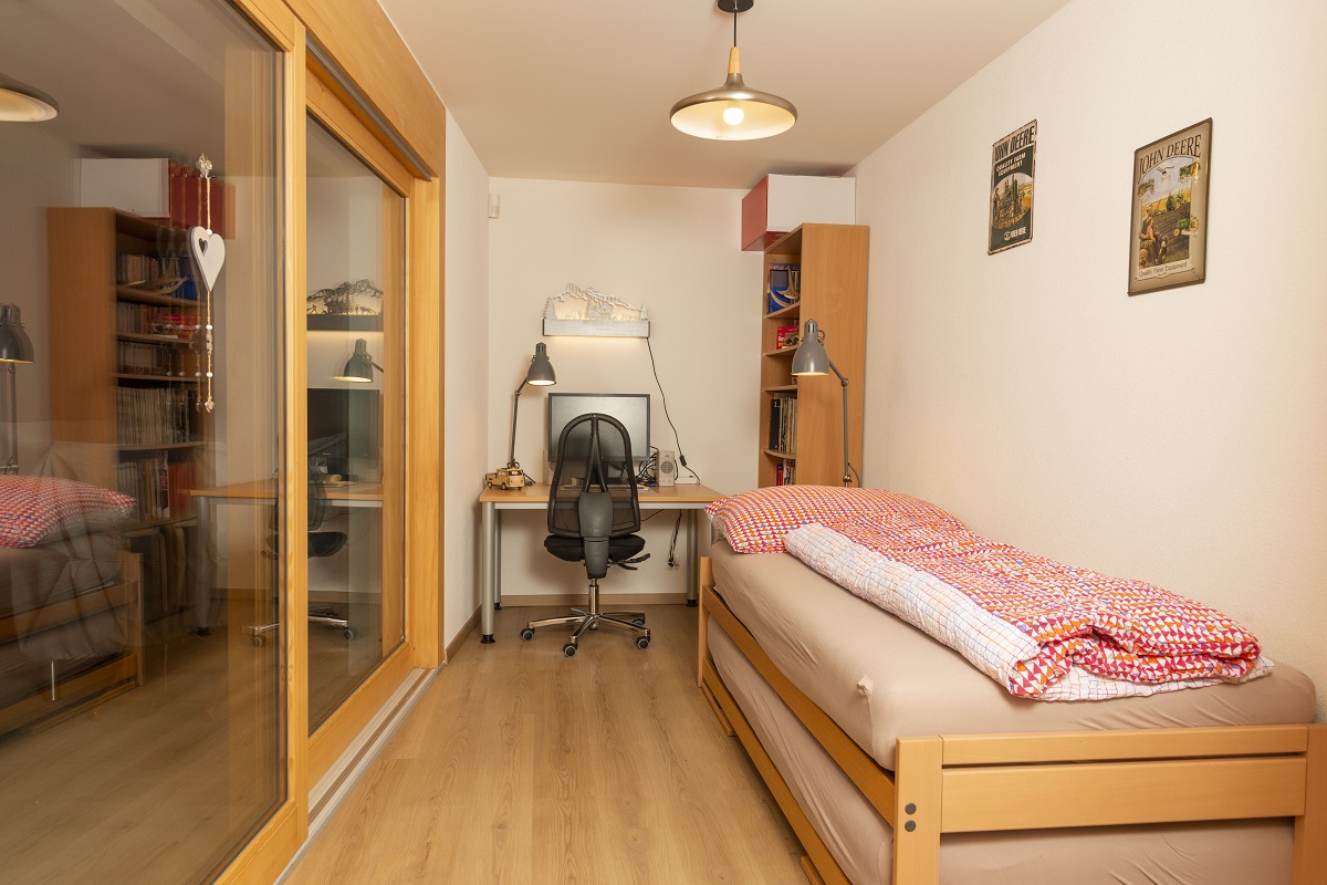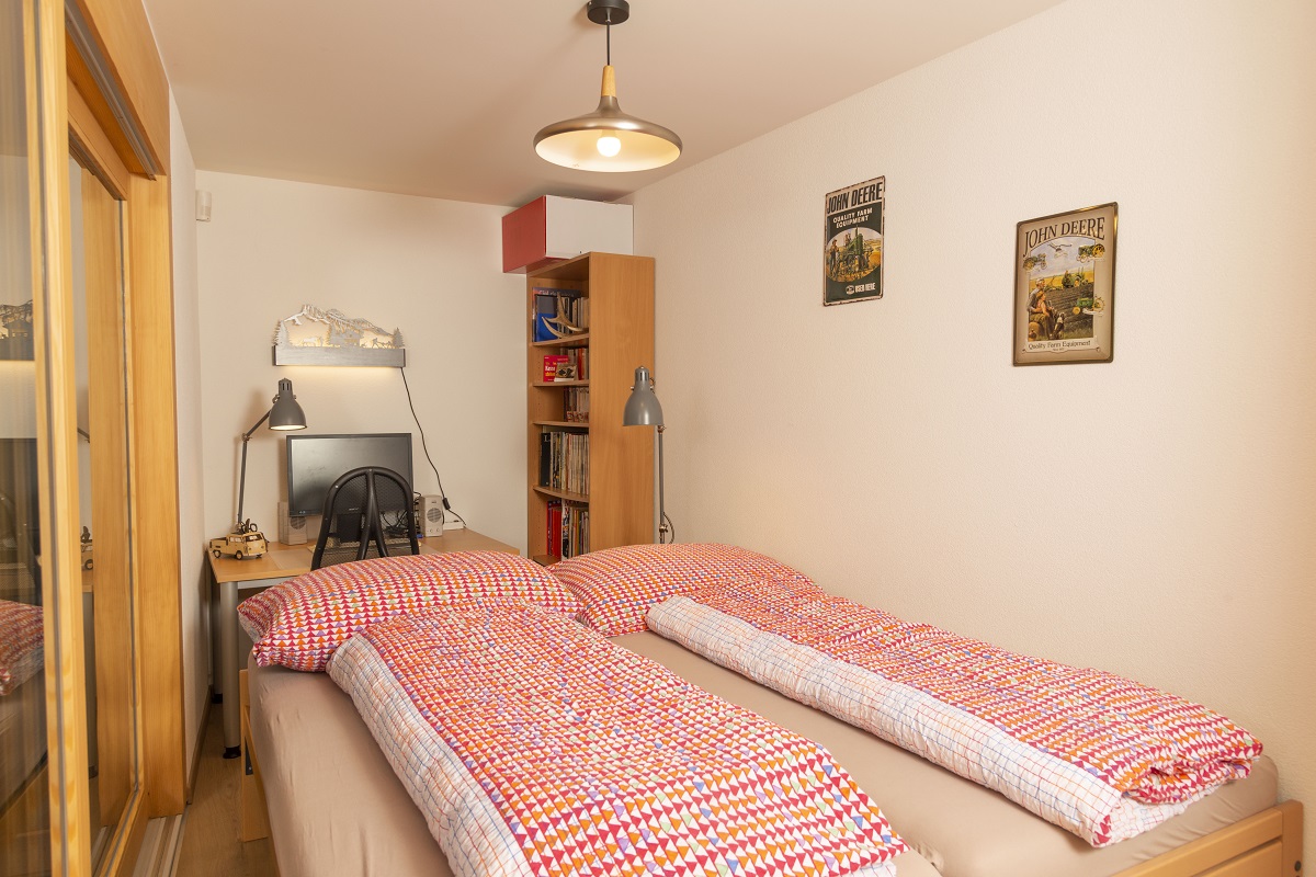 4 ½-Zimmer-Wohnung (85m2), 8 Personen, die beinhaltet: ein Schlafzimmer mit doppelbett (2x90x200), ein Schlafzimmer mit 2 Etagenbetten à 2 Plätze, ein Schlafzimmer mit 2 Schubladenbetten 90x200, ein Wohnzimmer mit Essecke, Internet-TV, Terrasse, eine separate, gut eingerichtete Küche (Induktionsherd, Ofen, Abwaschmaschine, Kühlschrank, Kühltruhe und Kaffeemaschine), ein Badezimmer mit Dusche/WC, ein Badezimmer mit Dusche und Behinderten-WC.1 Parkplatz in der Garage. Grosse Terrasse und privaten Garten mit Platz für 10 Personen