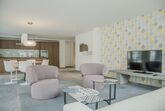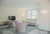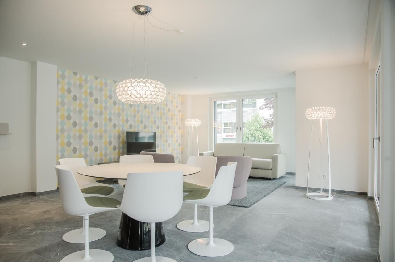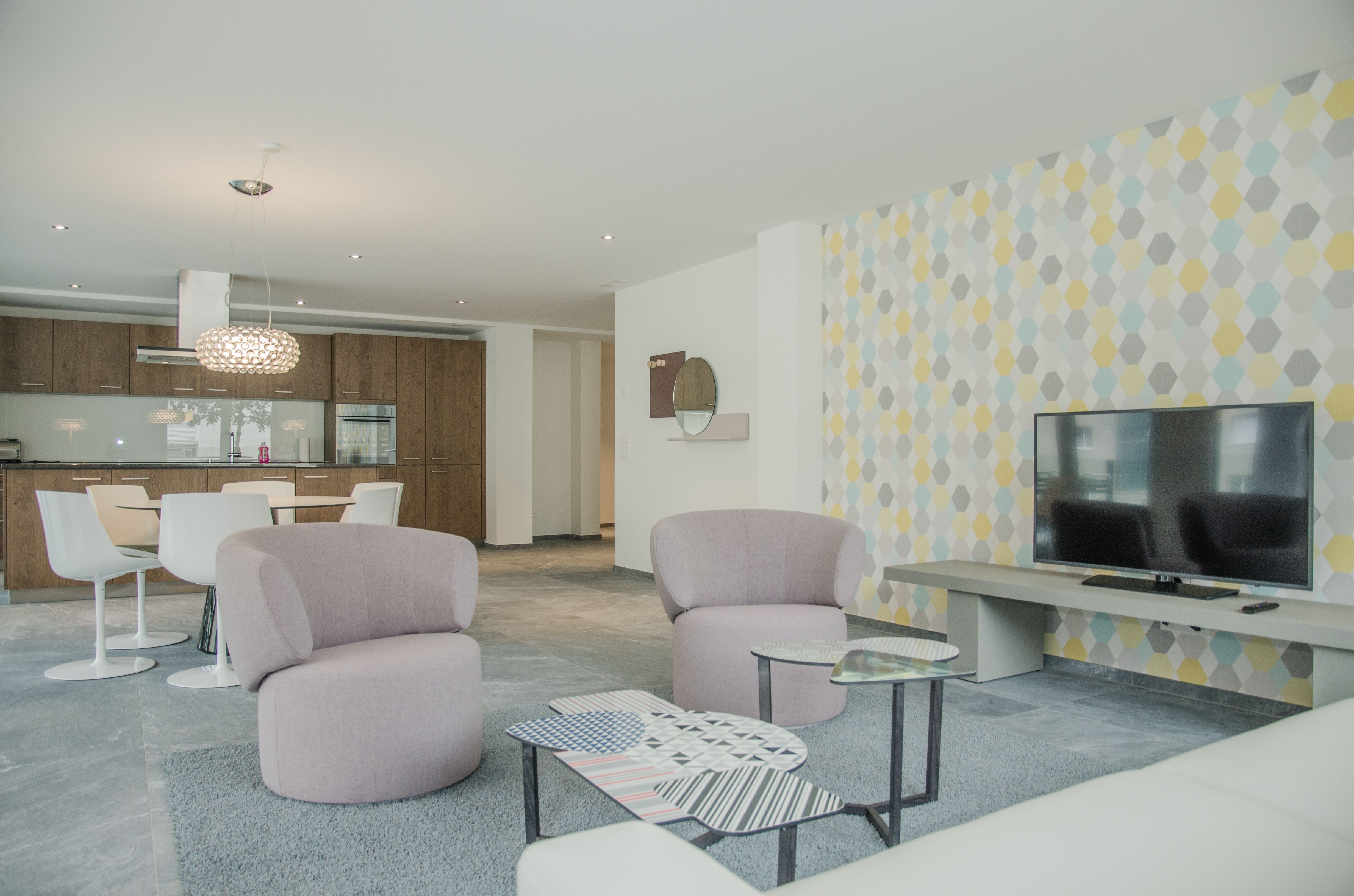 Im ersten Stock eines Neubaus, auf 125m2 und mit 3.5-Zimmern geniessen Sie Ferien im entspannten Luxus an urbaner Lage. An den grosszügigen Wohn- und Essbereich mit offener, hochwertiger und komplett ausgestatteter Küche schliesst ein grosser, sonniger Balkon an. Zwei Doppelschlafzimmer mit Kingsize-Betten und Badezimmer en suite sowie einem separaten Gäste-WC lassen keine Wünsche offen.