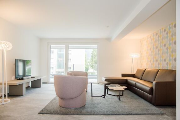 Im ersten Stock eines Neubaus, auf 125m2 und mit 3.5-Zimmern geniessen Sie Ferien im entspannten Luxus an urbaner Lage. An den grosszügigen Wohn- und Essbereich mit offener, hochwertiger und komplett ausgestatteter Küche schliesst ein grosser, sonniger Balkon an. Zwei Doppelschlafzimmer mit Kingsize-Betten und Badezimmer en suite sowie einem separaten Gäste-WC lassen keine Wünsche offen.