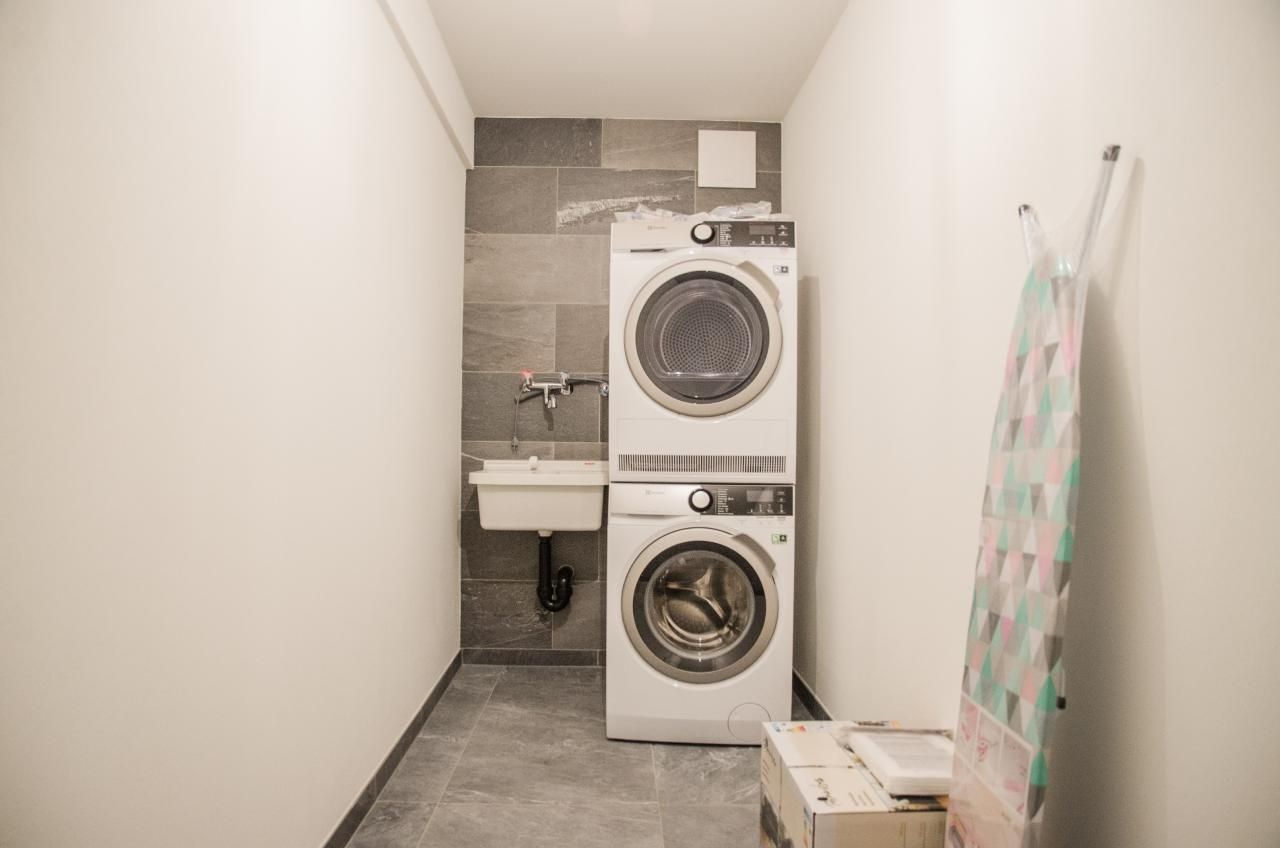 Praktisch ist die integrierte Waschküche mit Waschmaschine und Trockner.