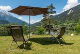 Der Außenbereich lässt Sie in die Schönheit der Umgebung eintauchen. Vor der Wohnung lädt ein gemütlicher Sitzplatz zum Verweilen ein – umgeben von einer idyllischen Liegewiese. Mit Tisch, Stühlen, Liegestühlen sowie einem Sonnenschirm und Holzkohle-Grill steht Ihrem Urlaubsgenuss im Freien nichts im Wege. Ein großer Parkplatz sowie ein überdachter Abstellplatz für Fahrräder oder Motorräder sind ebenfalls vorhanden.