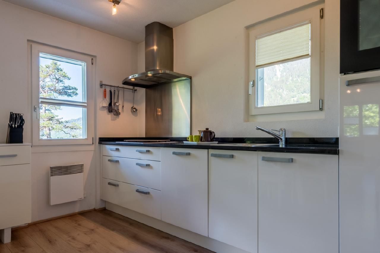 Die Wohnung zeichnet sich durch eine helle und freundliche Atmosphäre aus. Im Herzen der Wohnung befindet sich die Küche, ausgestattet mit 4 Kochplatten, Backofen, Kapsel- und Filterkaffeemaschine sowie weiteren Annehmlichkeiten, die keine Wünsche offen lassen. Der einladende Wohn-Essbereich, ausgestattet mit einem ausziehbaren Sofa, Kabel-TV und WLAN, bietet genügend Platz für gesellige Stunden. Das Schlafzimmer verspricht mit zwei Einzelbetten und geräumigem Kleiderschrank erholsame Nächte. Ein modern gestaltetes Badezimmer sowie ein praktischer Abstellraum mit Waschmöglichkeiten ergänzen das Innere Ihrer Ferienoase.
