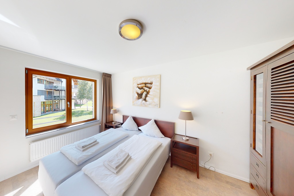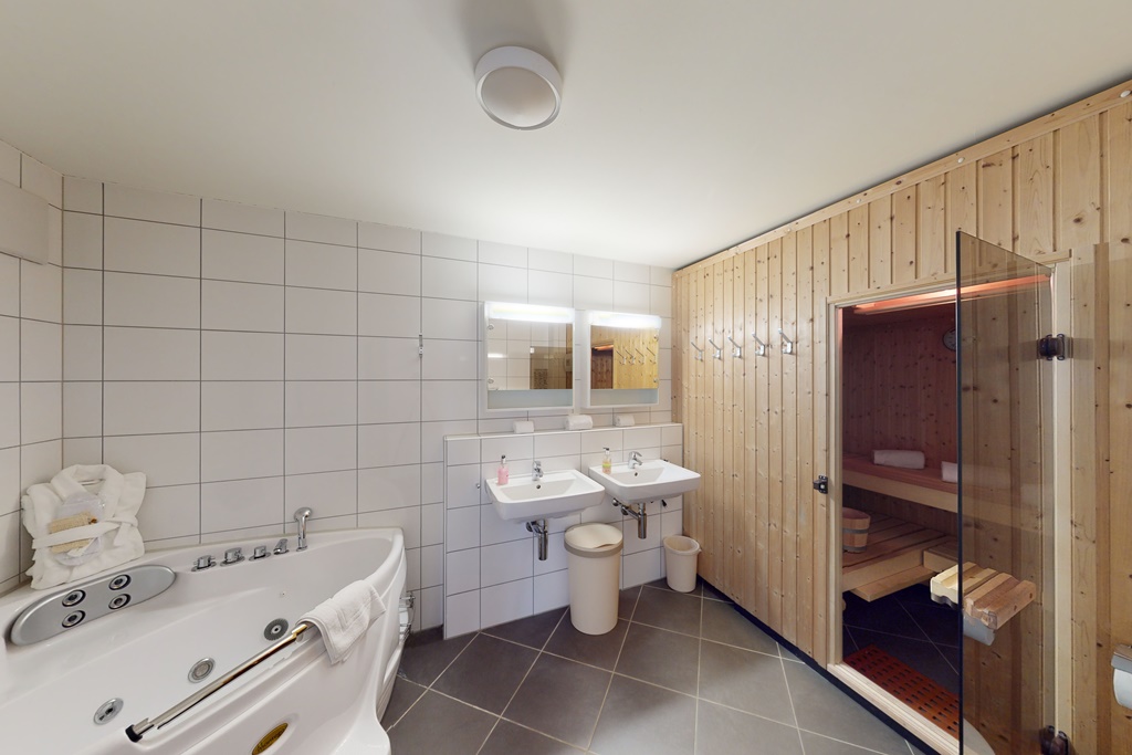 Die Ferienwohnung verfügt über 3 Schlafzimmer mit je 2 Einzelbetten ein Badezimmer mit Dusche, Badewanne, Toilette, Lavabo und Sauna eine separate Toilette mit Lavabo eine separate Dusche mit Lavabo eine komplett ausgestattete Küche mit Nespresso-Kapselmaschine ein Balkon mit atemberaubender Seesicht Inneneinrichtung & Technik