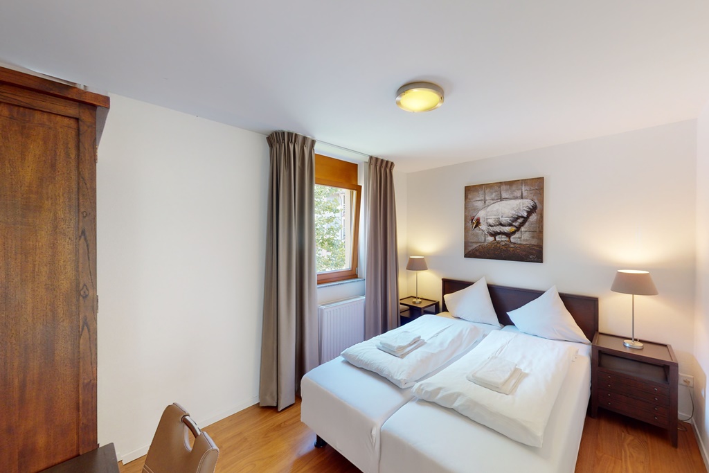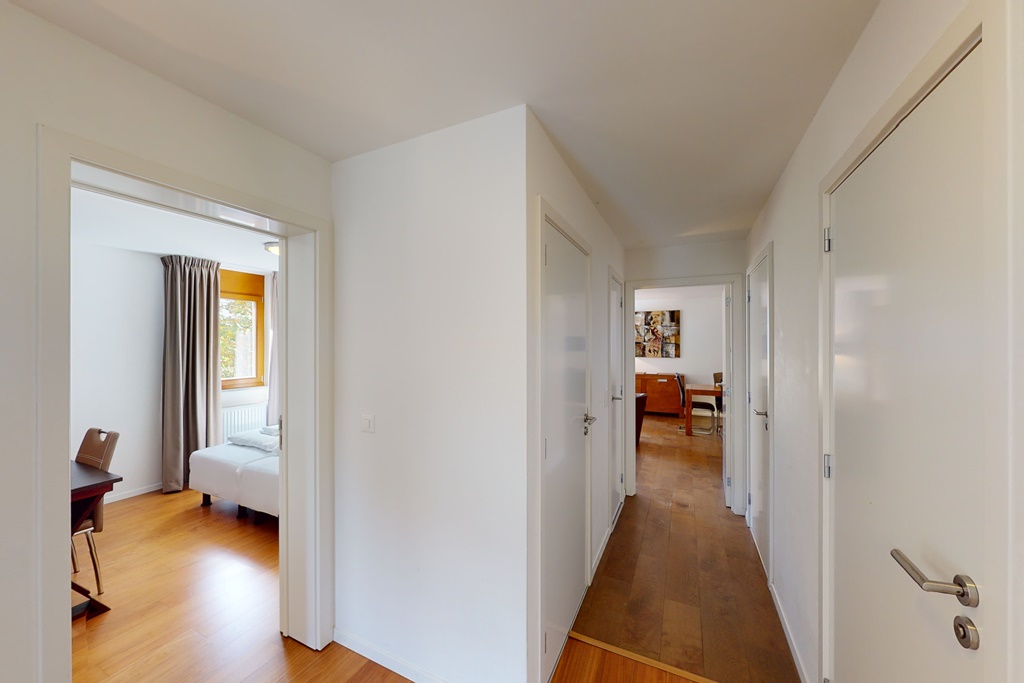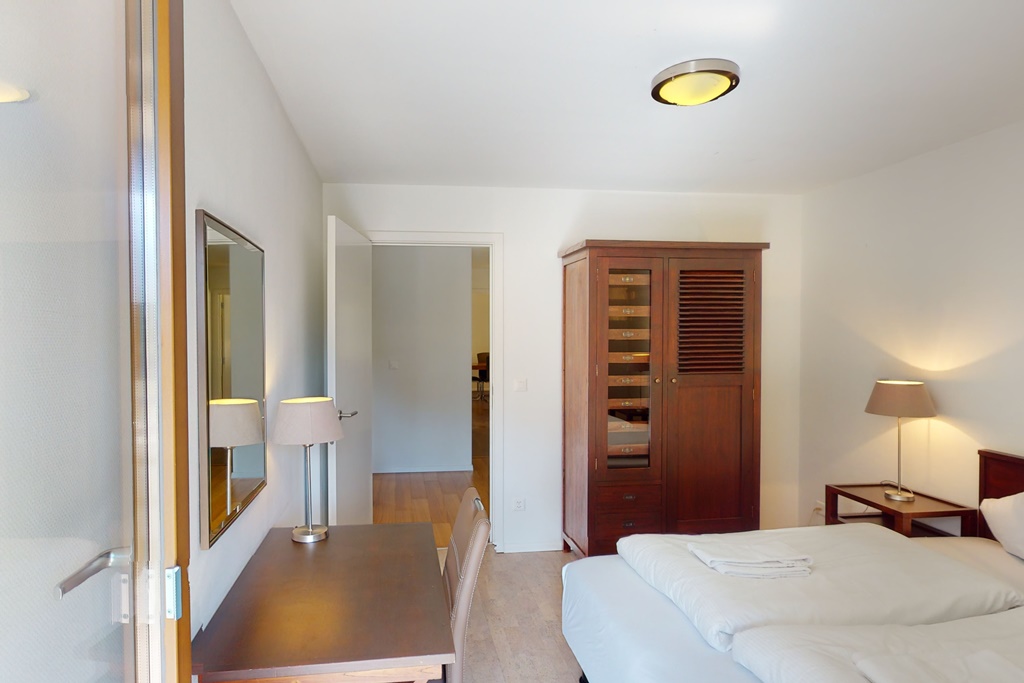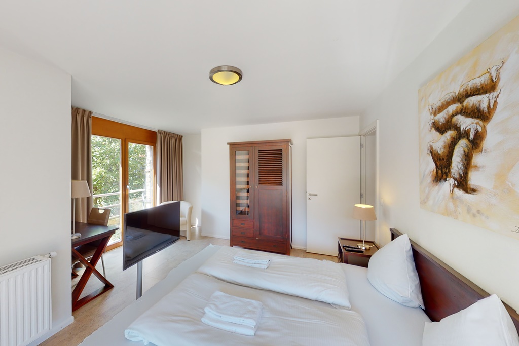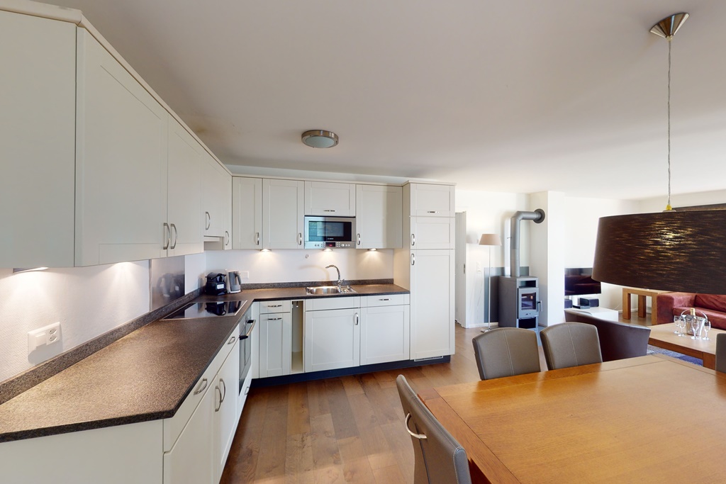 Die Ferienwohnung verfügt über3 Schlafzimmer mit je 2 Einzelbettenein Badezimmer mit Dusche, Whirlpool-Badewanne, Toilette und Lavaboeine separate Toilette mit Lavaboeine komplett ausgestattete Küche mit Nespresso-Kapselmaschineein Balkon mit teils SeesichtInneneinrichtung & Technik