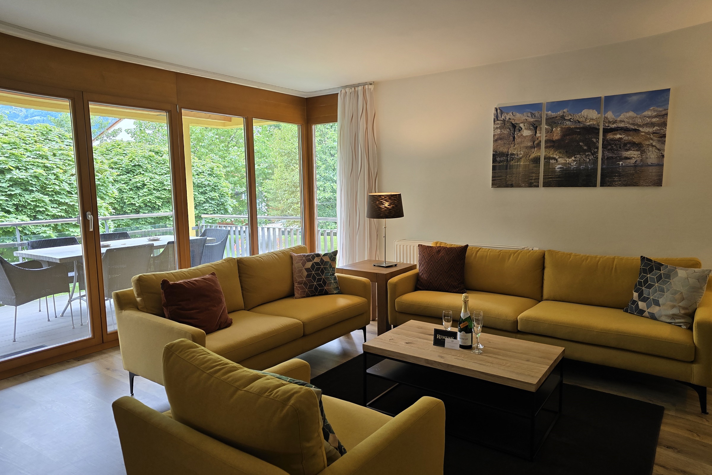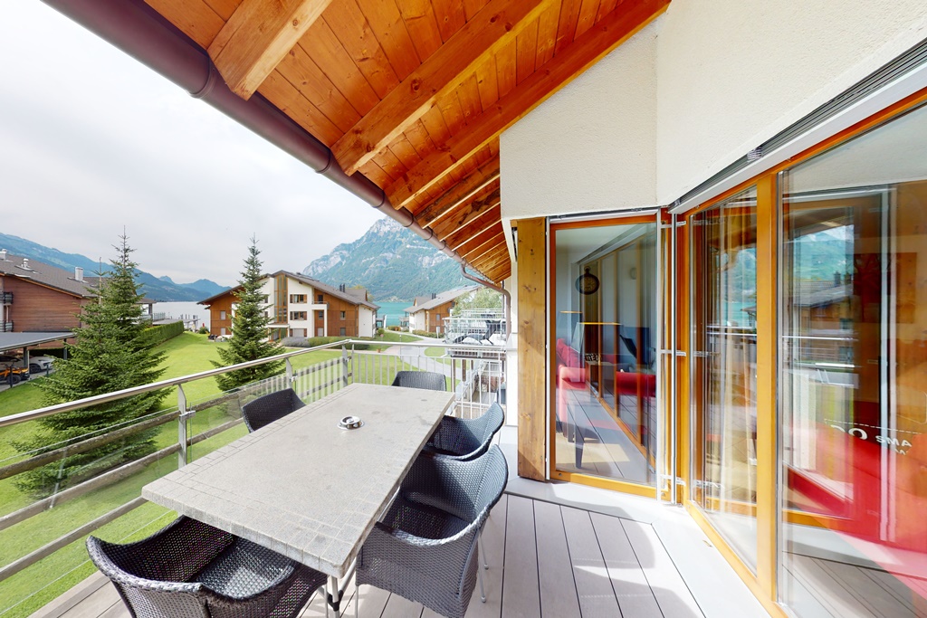 Walensee House & Apartments - direkt am Walensee Zuhause ist, wo man sich wohlfühlt und gut behandelt wird. Die Lage am Walensee ist atemberaubend und bietet einen unglaublichen Blick auf die majestätischen Churfirsten oberhalb des Walensees. Auf dem Areal des Resort Walensee befindet sich ein Restaurant, ein Café und ein Sportgeschäft mit einer breiten Auswahl an Sportgeräten, Kleidung und Accessoires. Nicht zu letzt auch in wenigen Schritten ist die Gondelbahn SeeJet erreichbar, welche Sie zum Ski-, Bike- und Wandergebiet Flumserberg befördert. Im Sommer lädt auch nach einer Wanderung in den Bergen der schöne Strand am Walensee zum Baden und Verweilen ein. So ist die gewünschte Ferienwohnung für Ruhesuchende, Aktive, Geniesser aber auch Familien zum idealen Ausgangsort für ein paar Tage Urlaub. Gerne geben wir die Partnerschaft mit Tennisclub Terza bekannt. Alle Wohnungseigentümer und Gäste von Walensee House & Apartments kommen durch diese Partnerschaft in den Genuss während dem Aufenthalt in einem unserer Apartments, gratis Tennis spielen zu können. Details der einzelnen Ferienwohnungen 7x Comfort Apartment (4 - 6 Personen) mit Terrasse 5x Deluxe Apartment (4 - 6 Personen) mit Terrasse 5x Deluxe Penthouse (4 - 6 Personen) mit Terrasse 6x Penthouse Apartment (6 - 8 Personen) mit Terrasse Inneneinrichtung Die Ferienwohnungen verfügen alle über einen geräumigen, gemütlichen Wohnraum und eine komplett ausgestattete Küche.
