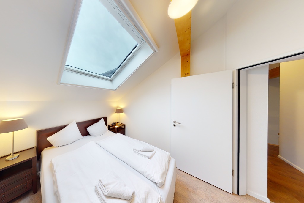 Die Dachwohnung ist modern eingerichtet und verfügt über einen geräumigen und gemütlichen Innenraum. Kostenloses WLAN in der ganzen Wohnung und ein Smart-TV ist vorhanden.360°-Rundgang durch die Wohnung