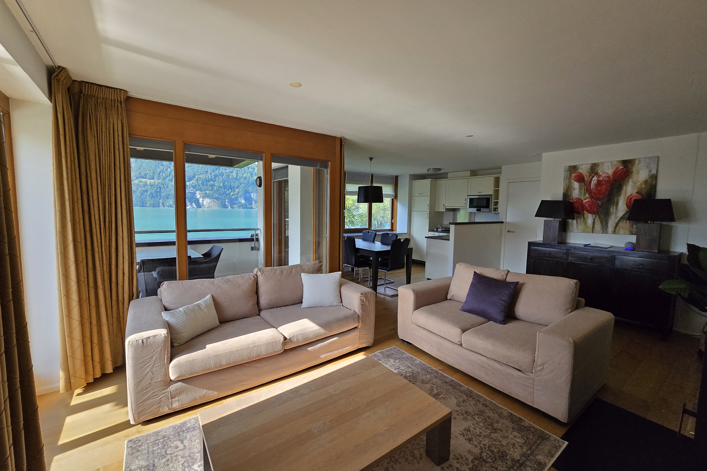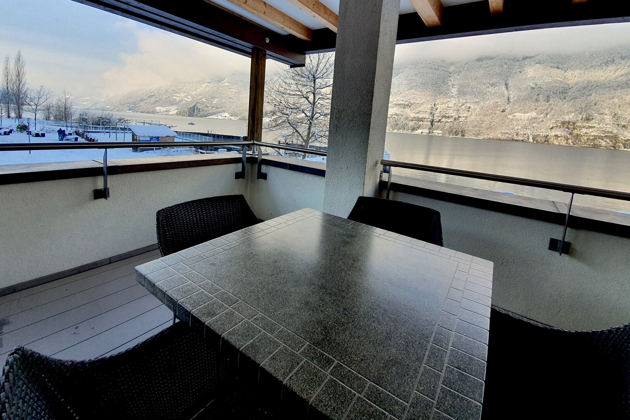 Walensee House & Apartments - direkt am Walensee Zuhause ist, wo man sich wohlfühlt und gut behandelt wird. Die Lage am Walensee ist atemberaubend und bietet einen unglaublichen Blick auf die majestätischen Churfirsten oberhalb des Walensees. Auf dem Areal des Resort Walensee befindet sich ein Restaurant, ein Café und ein Sportgeschäft mit einer breiten Auswahl an Sportgeräten, Kleidung und Accessoires. Nicht zu letzt auch in wenigen Schritten ist die Gondelbahn SeeJet erreichbar, welche Sie zum Ski-, Bike- und Wandergebiet Flumserberg befördert. Im Sommer lädt auch nach einer Wanderung in den Bergen der schöne Strand am Walensee zum Baden und Verweilen ein. So ist die gewünschte Ferienwohnung für Ruhesuchende, Aktive, Geniesser aber auch Familien zum idealen Ausgangsort für ein paar Tage Urlaub. Gerne geben wir die Partnerschaft mit Tennisclub Terza bekannt. Alle Wohnungseigentümer und Gäste von Walensee House & Apartments kommen durch diese Partnerschaft in den Genuss während dem Aufenthalt in einem unserer Apartments, gratis Tennis spielen zu können. Details der einzelnen Ferienwohnungen 7x Comfort Apartment (4 - 6 Personen) mit Terrasse 5x Deluxe Apartment (4 - 6 Personen) mit Terrasse 5x Deluxe Penthouse (4 - 6 Personen) mit Terrasse 6x Penthouse Apartment (6 - 8 Personen) mit Terrasse Inneneinrichtung Die Ferienwohnungen verfügen alle über einen geräumigen, gemütlichen Wohnraum und eine komplett ausgestattete Küche.