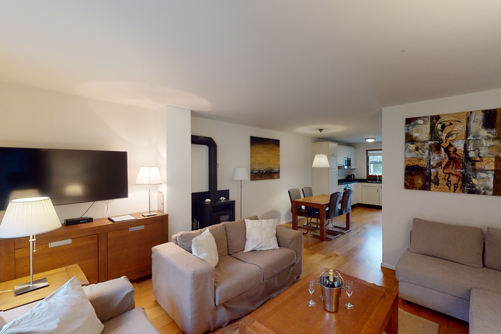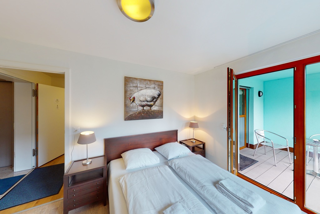 2 Schlafräume, Backofen, Balkon, Cheminée, Geschirrspüler, Haustiere nicht erlaubt, Kaffeemaschine, Küche, Kühlschrank, Lift, Mikrowelle, Nichtraucherzimmer-/wohnung, Tisch- und Küchenwäsche, Töpfe Pfannen Geschirr, TV, Wasserkocher, WiFi