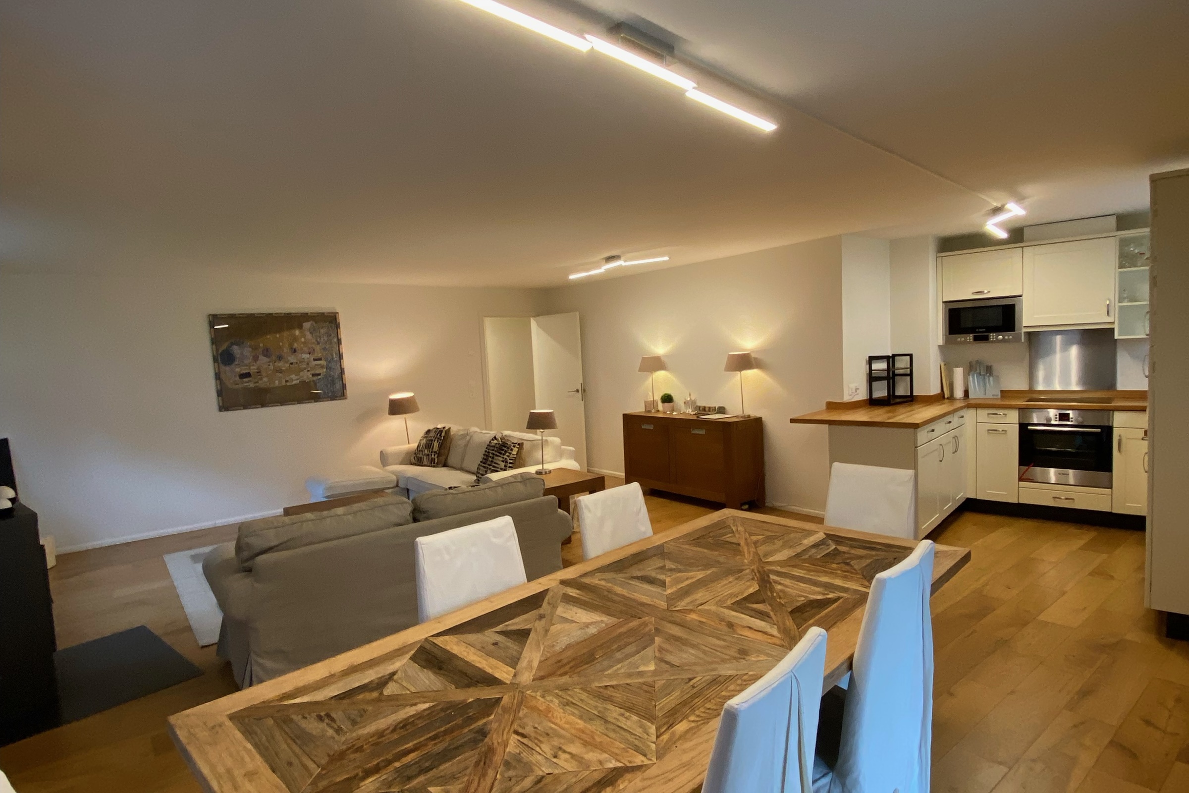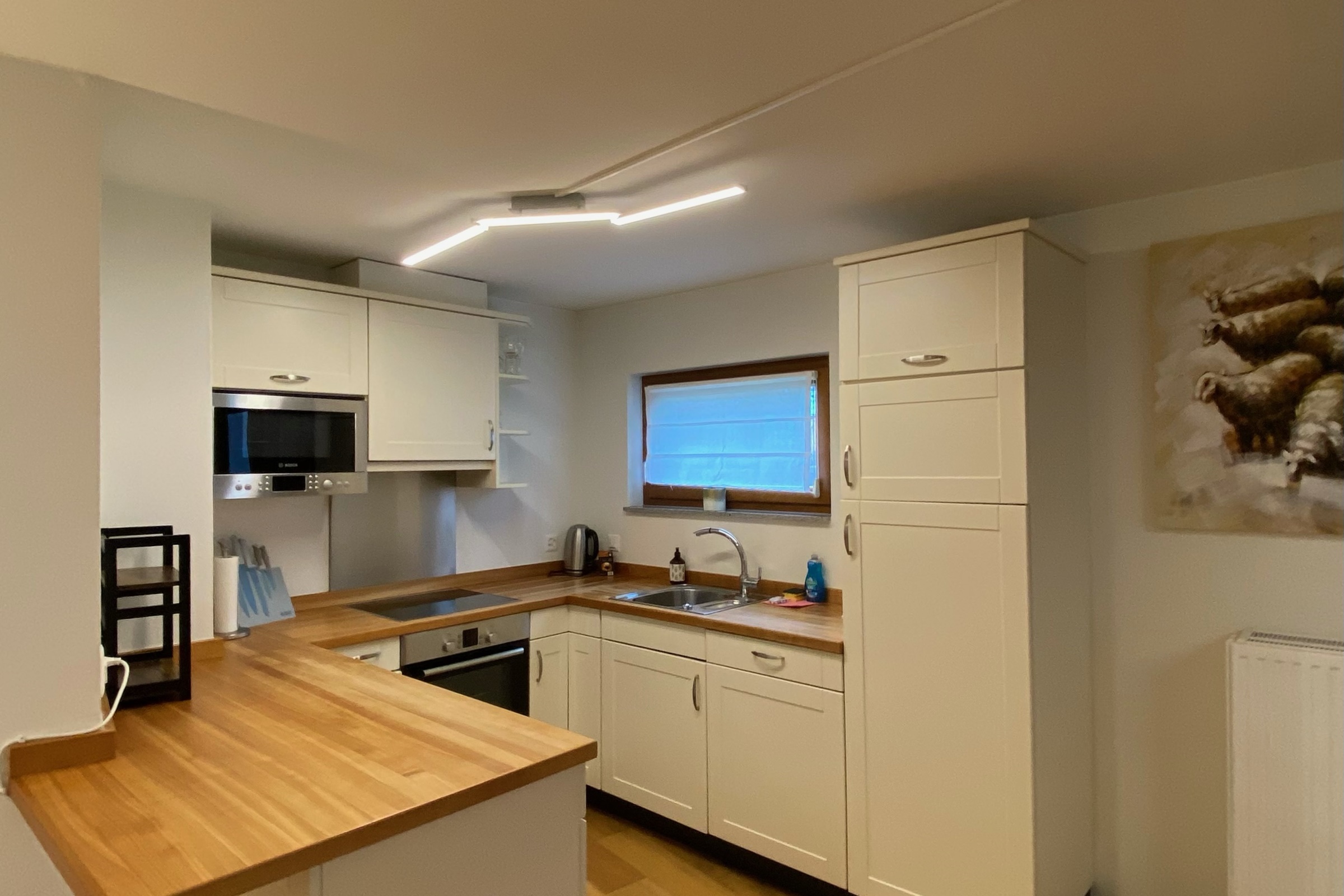 Die Ferienwohnung ist modern eingerichtet und verfügt über einen geräumigen und gemütlichen Innenraum. Kostenloses WLAN in der ganzen Wohnung und ein Smart-TV ist vorhanden.