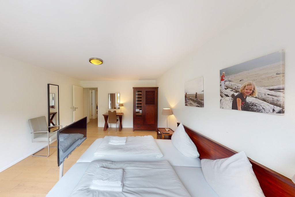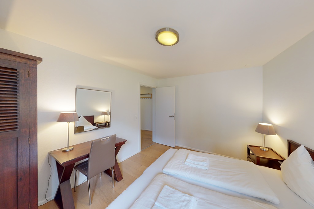 Die Ferienwohnung verfügt über2 Schlafzimmer mit je 2 Einzelbettenein Badezimmer mit Badewanne, Dusche, Whirlpool, Sauna, Toilette und Lavaboeine separate Toilette mit Lavaboeine komplett ausgestattete Küche mit Nespresso-Kapselmaschineein Balkon mit See- und BergsichtInneneinrichtung & Technik