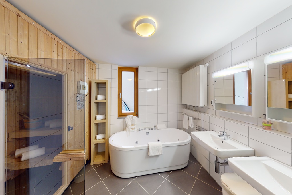 2 Schlafräume, Backofen, Balkon, Cheminée, Geschirrspüler, Haustiere nicht erlaubt, Kaffeemaschine, Küche, Kühlschrank, Lift, Mikrowelle, Nichtraucherzimmer-/wohnung, Sauna in Zimmer/ FeWo, Tisch- und Küchenwäsche, Töpfe Pfannen Geschirr, TV, Wasserkocher, Whirlpool in Zimmer/ FeWo, WiFi