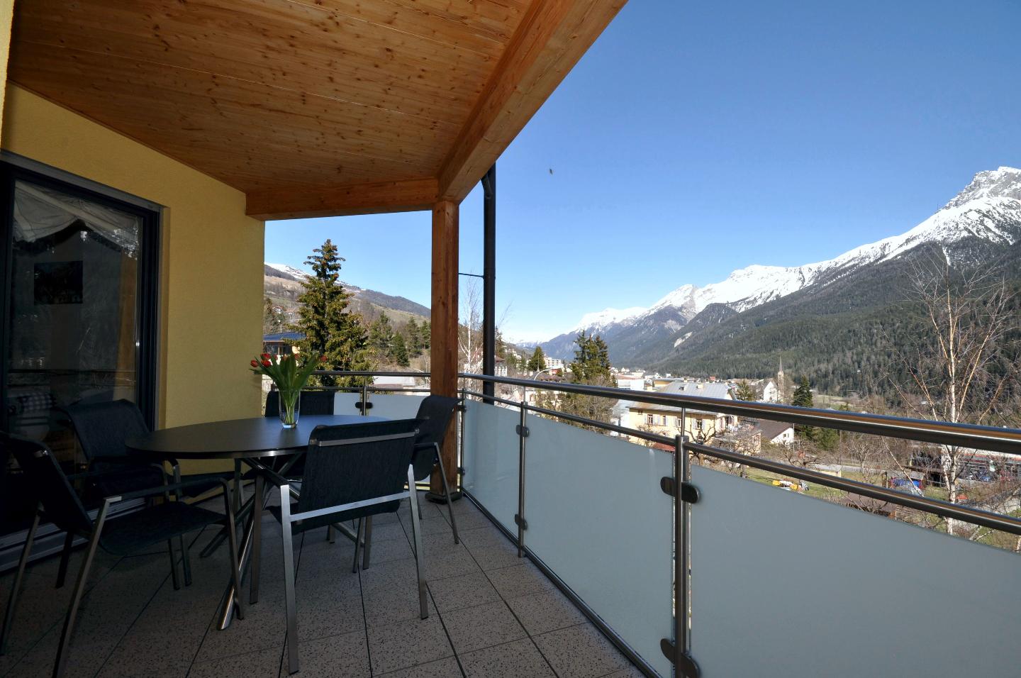 Von der Südterrasse geniessen Sie einen traumhaften Panoramablick auf die Unterengadiner Dolomiten und den Schweizerischen Nationalpark.