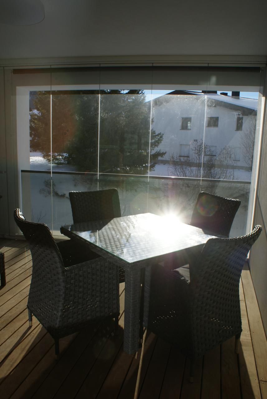 Die Wohnung wurde anfangs November 2011 sehr geschmackvoll und modern eingerichtet. Im Wohnzimmer geniesst der Gast nun ein offenes, leicht möbliertes Wohnzimmer. Die ganze Wohnung wurde im Herbst 2013 zusätzlich geschmackvoll dekoriert. Ein wunderbares Multimedia Fernseh- Soundsystem steht dem Feriengast zur Verfügung. Digitaler Fernsehempfang (50), Stereoanlage mit digitalem Radioempfang mit Möglichkeit das Eigene iPod und iPhone über die Stereo abzuspielen. Fernseher mit 3D Brillen. Neu mit WLAN.