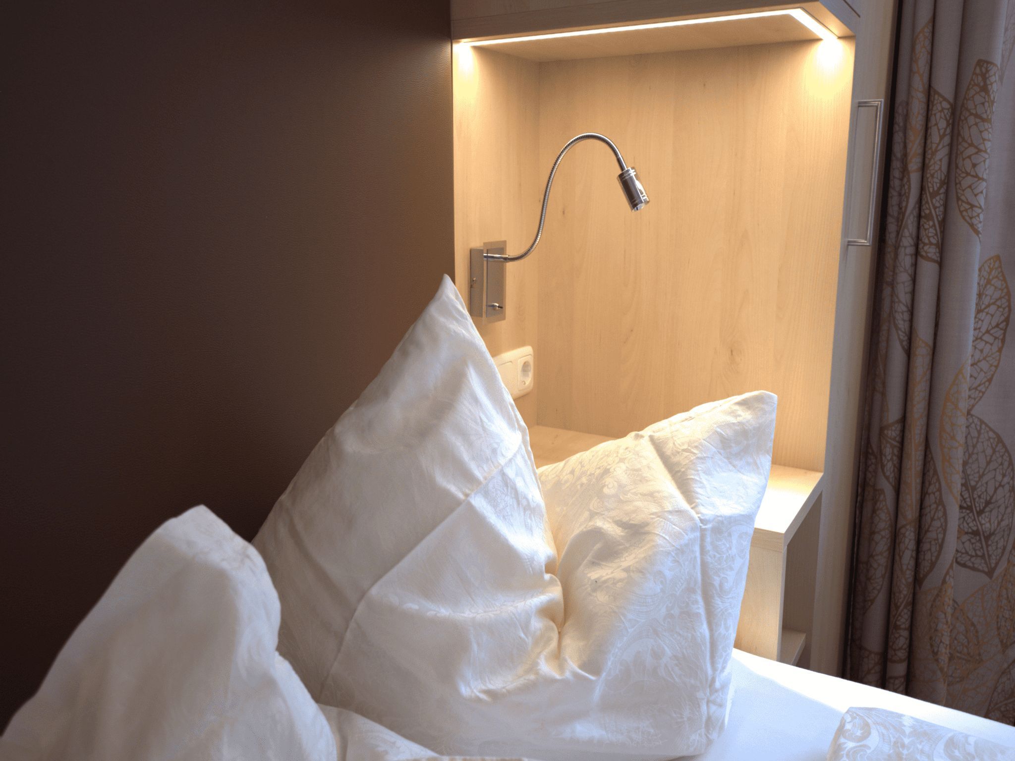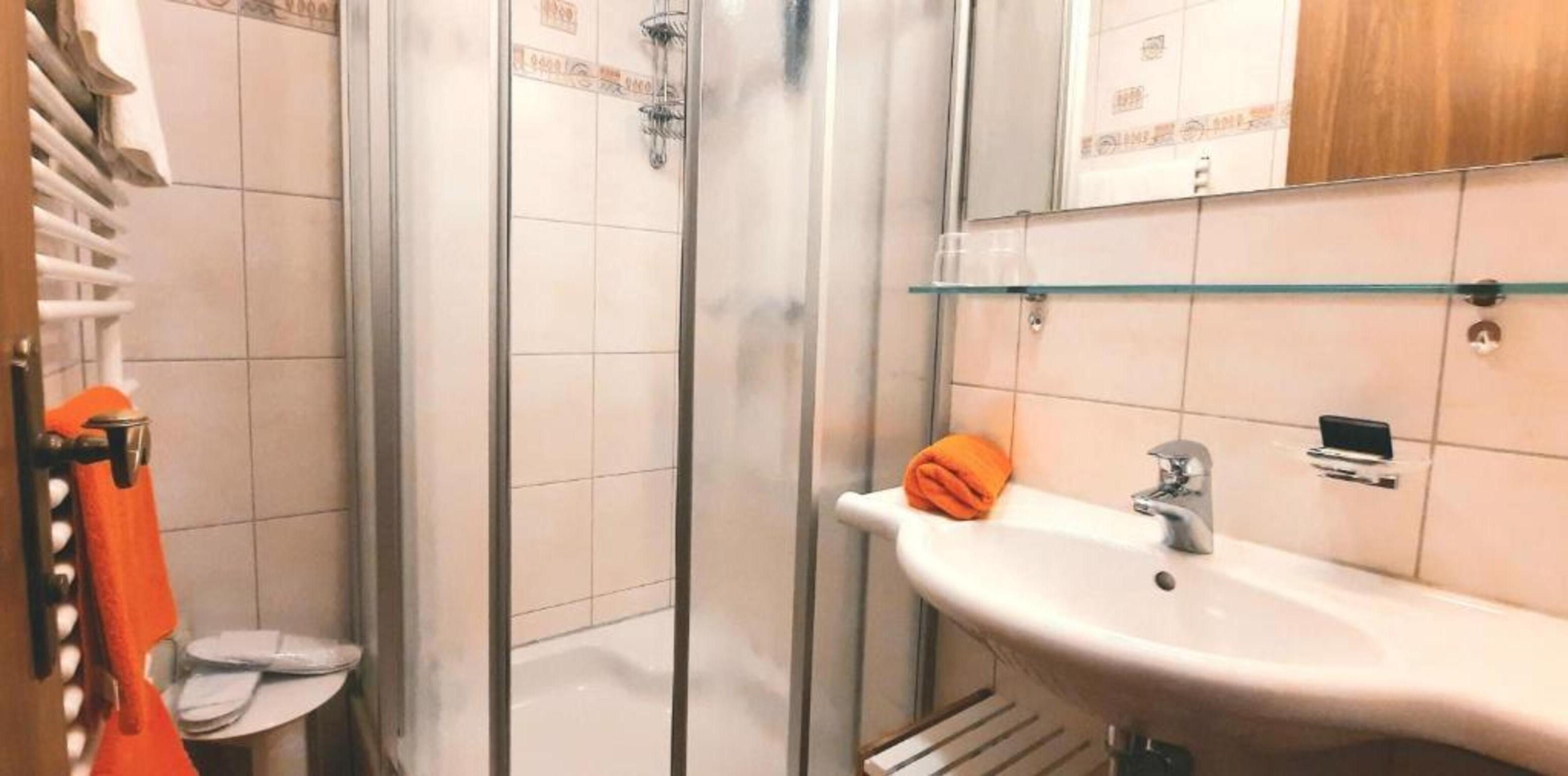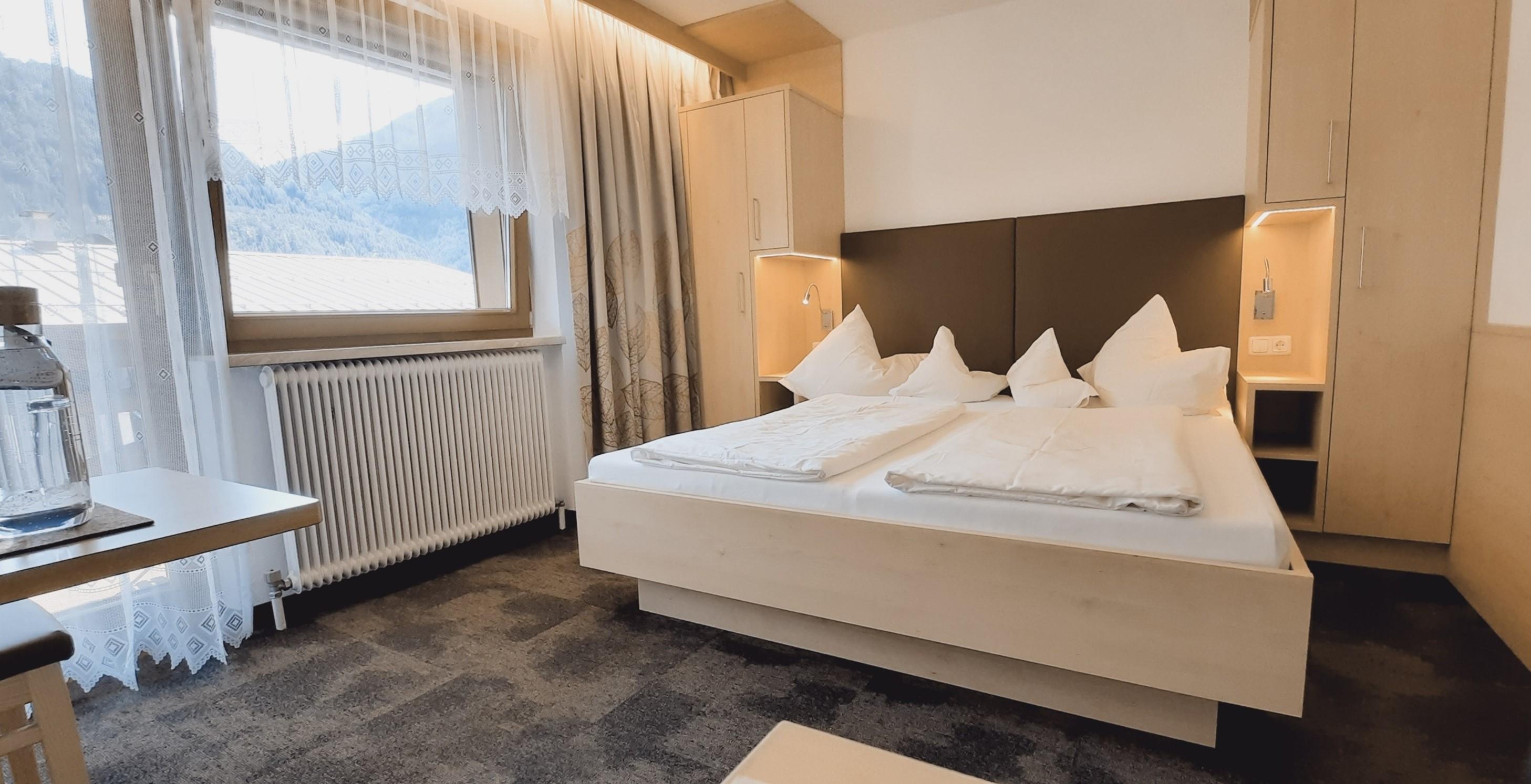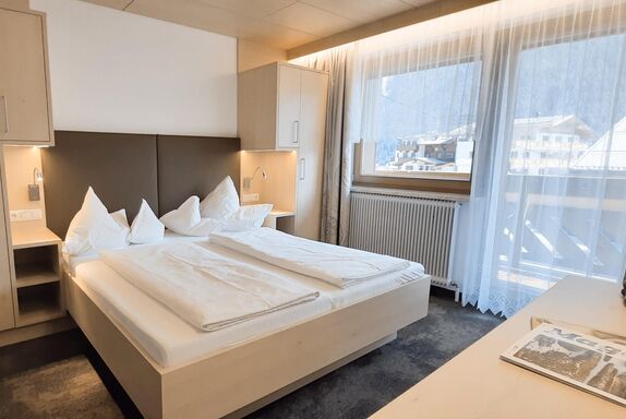 Gemütliches Doppelzimmer mit Ostbalkon (Nichtraucher Zimmer), mit Dusche/WC, Fußende der Betten offen, Haarföhn, Schreibtisch, Telefon, kostenloses W-Lan, Safe, Kabel TV.