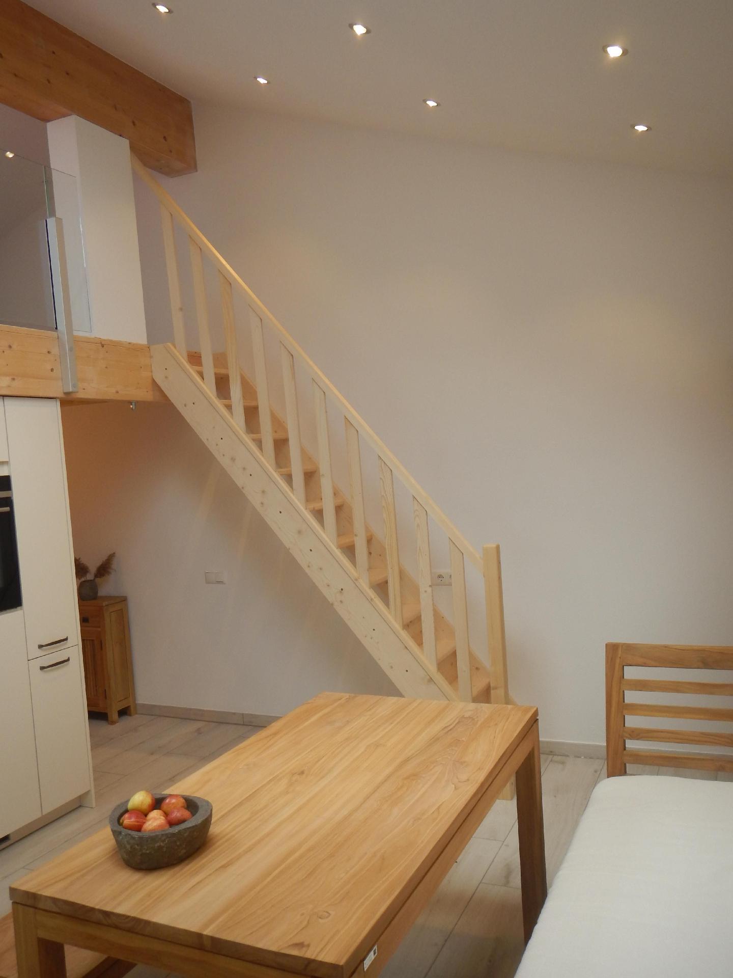 Wir haben bei uns in Rettenbach am Auerberg eine Ferienwohnung ausgebaut und neu eingerichtet. Ein Appartement mit separatem Eingang und einem Doppelbett (Schlafkoje) in der Galerie; ein „Retreat“ oder ein „Hideaway“ für zwei Personen eine gute Autostunde von München entfernt. Lichtdurchflutet haben die Gäste tagsüber einen Blick in den bayerischen weiß-blauen Himmel und nachts kann man vom Bett aus die Sterne beobachten – die scheinen ja hier im Ostallgäu wegen dem geringeren Streulicht auch etwas heller als in München. Außenrollos können aber, falls gewünscht, für einen erholsamen Schlaf die Ferienwohnung völlig verdunkeln. Ideal für Fahrradtouren im landschaftlichen schönen Ostallgäu, oder ein Besuch der Königsschlösser, oder um auch mal in Ruhe konzeptionell arbeiten zu können (Breitbandanschluss) vorhanden. Eignet sich auch für ausgiebige Pilzexkursionen in die umliegenden Wälder. Unsicher? wir sind auch ehrenamtlich tätig und führen auch für alle Interessierten eine Pilzkontrolle durch und zeigen die Unterschiede zwischen giftigen und essbaren Pilzen. Für die (sorgenfreie) Zubereitung der Funde steht auch eine voll ausgestattete Küche mit Backofen, Kaffeemaschine und Spülmaschine zur Verfügung. Bettwäsche, Handtücher, Geschirrtücher und Föhn werden auch gestellt. Im Winter können die Ski und die Ausrüstung in der Kammer getrocknet werden und die Schuhe sind dann am nächsten Tag schon auf „Betriebstemperatur“. TV mit SAT, schnelles WLAN und ein Parkplatz vor der Türe runden das Gesamtpaket ab.Die Ferienwohnung ist nicht für Kleinkinder/ Kinder ausgestattet oder geeignet.