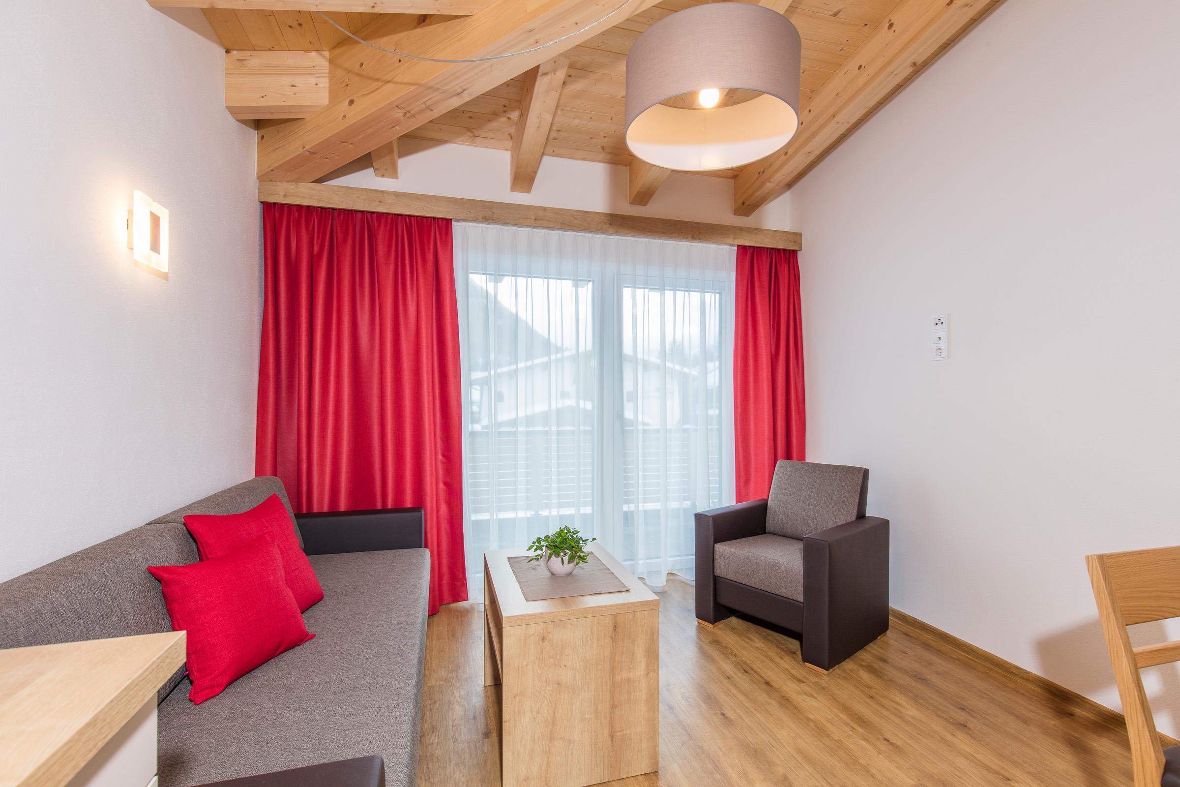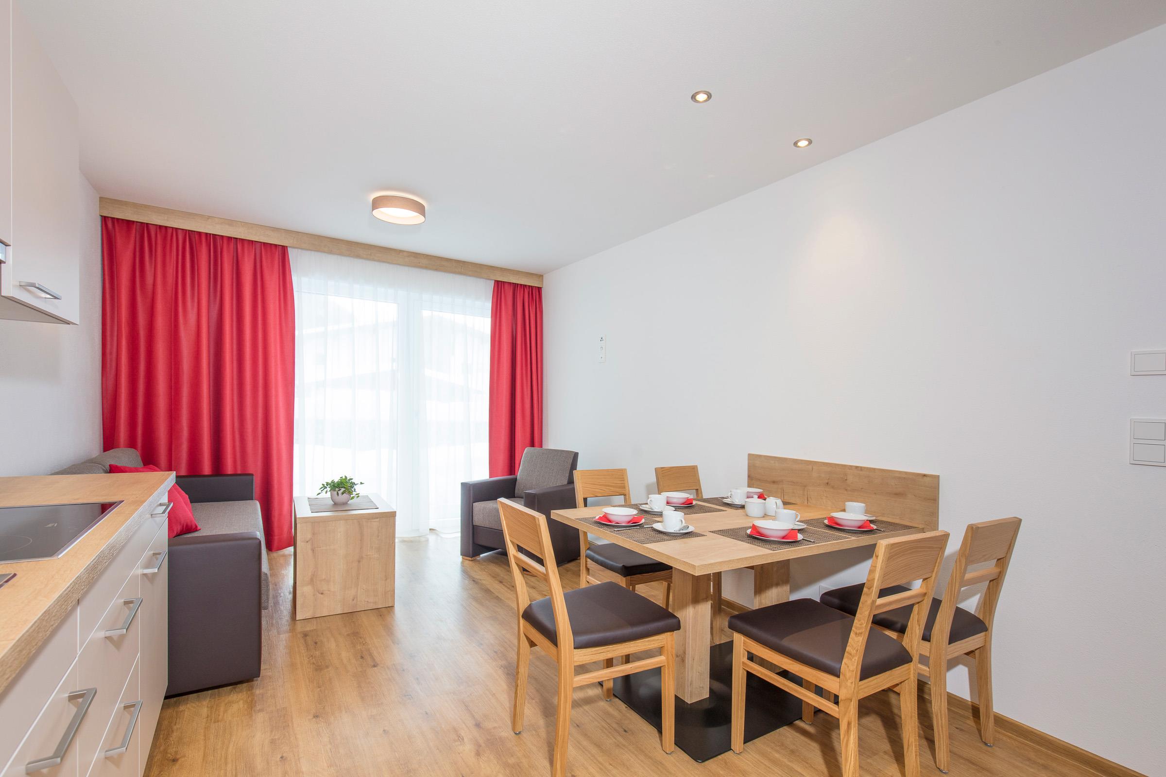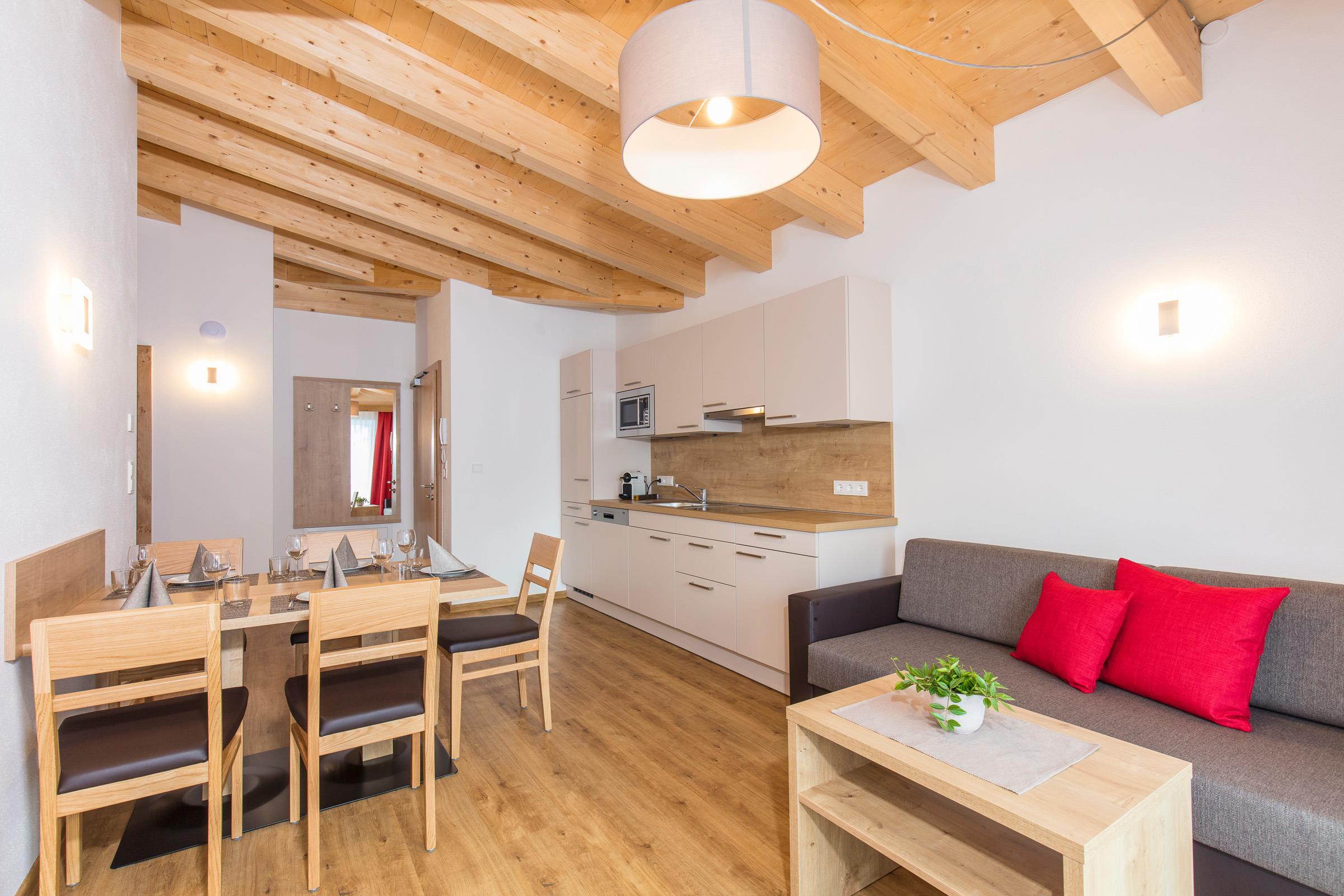 2017 errichtetes Appartement (Größe ca. 58 m²): Das Apartment verfügt über 1 Doppelzimmer; 1 Dreibettzimmer (Doppelbett und Einzelbett); 2 Badezimmer mit Dusche/WC und Haartrockner; gemütliche, voll ausgestattete Wohnküche mit Essbereich, Ceran-Kochfeld, Mikrowelle, Kühlschrank, Spülmaschine, Wasserkocher, Kaffeemaschine uvm. Balkon mit herrlichem Bergblick. Eines der beiden Appartement befindet sich im Dachgschoß und ist mit Sichtdachstuhl.
