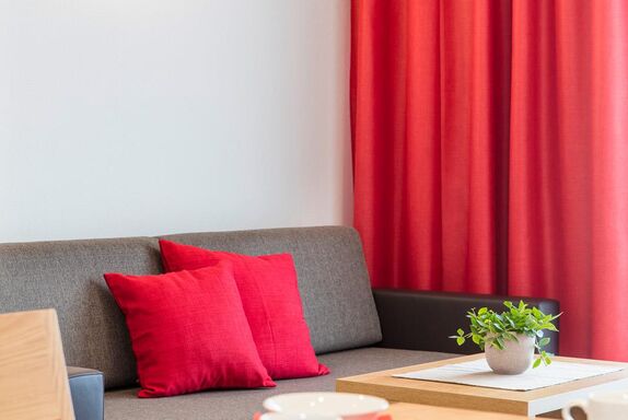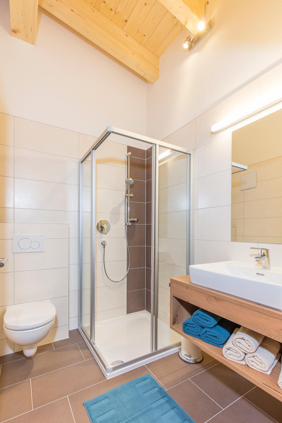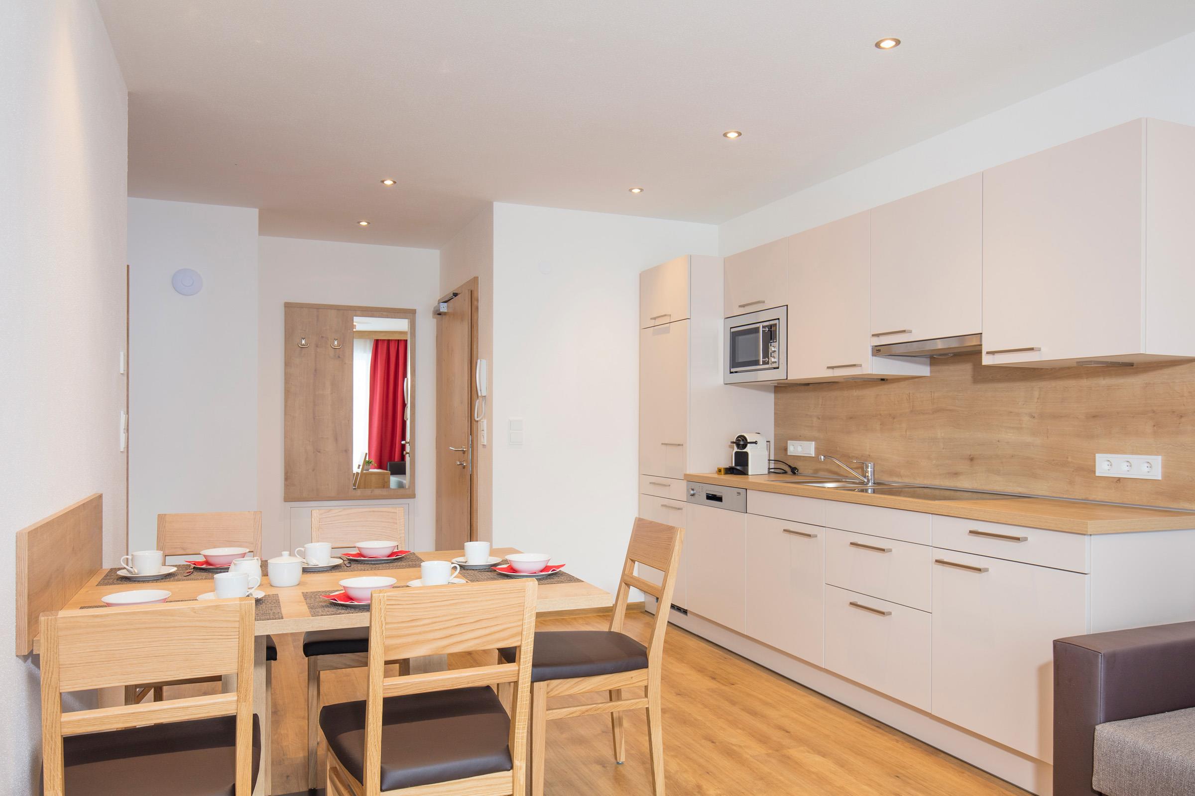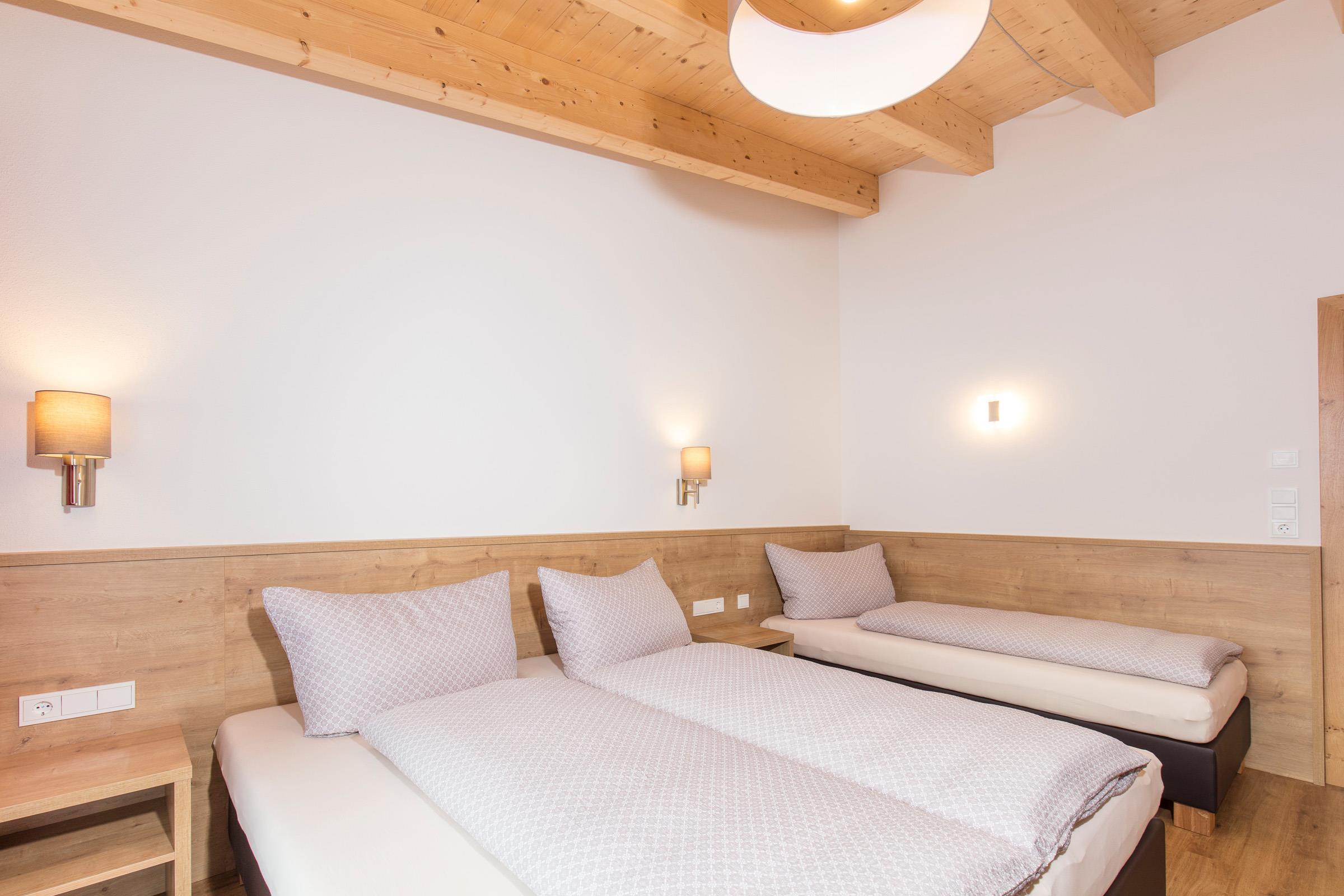 2017 errichtetes Appartement (Größe ca. 58 m²): Das Apartment verfügt über 1 Doppelzimmer; 1 Dreibettzimmer (Doppelbett und Einzelbett); 2 Badezimmer mit Dusche/WC und Haartrockner; gemütliche, voll ausgestattete Wohnküche mit Essbereich, Ceran-Kochfeld, Mikrowelle, Kühlschrank, Spülmaschine, Wasserkocher, Kaffeemaschine uvm. Balkon mit herrlichem Bergblick. Eines der beiden Appartement befindet sich im Dachgschoß und ist mit Sichtdachstuhl.
