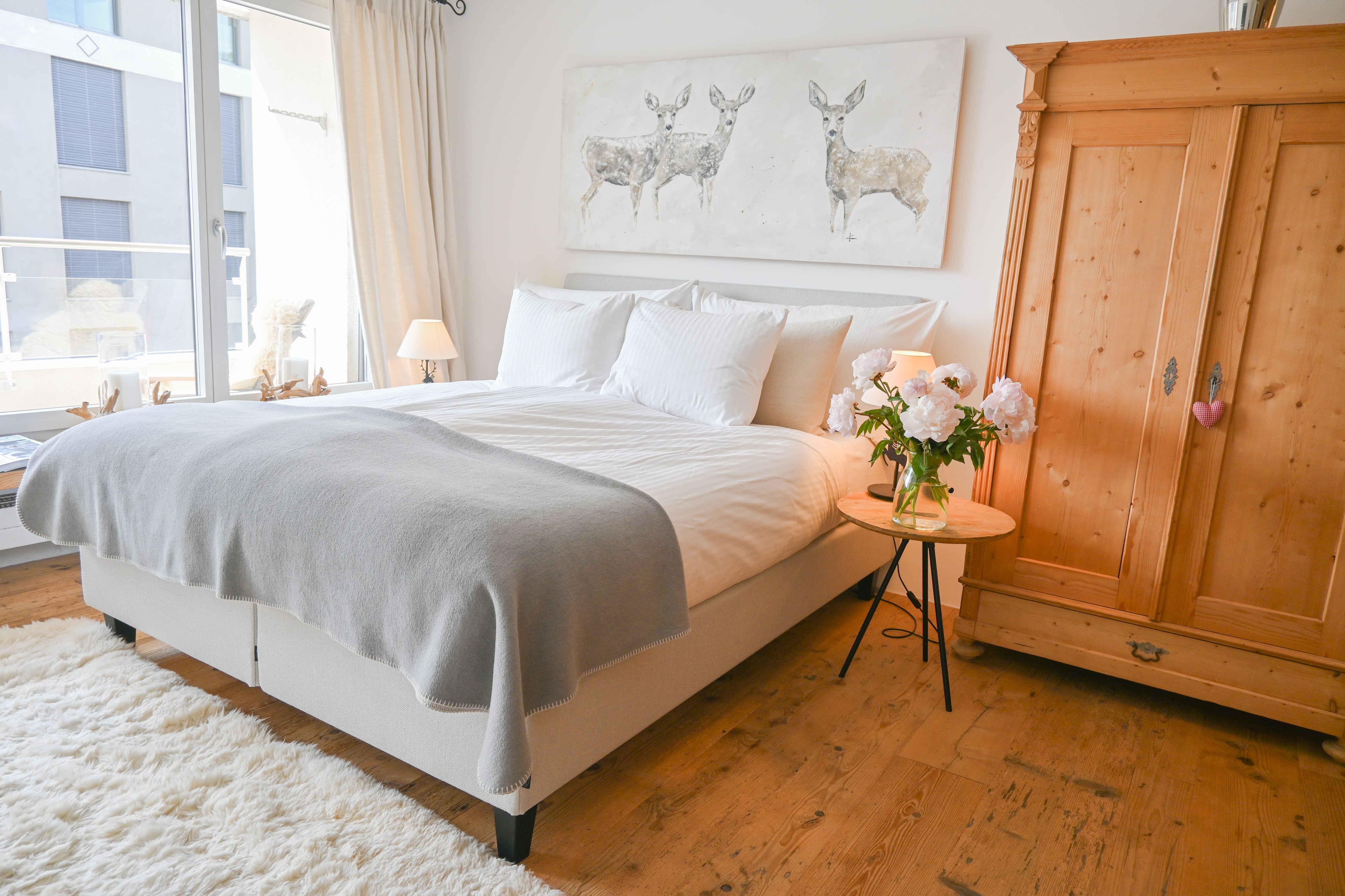 Das Apartment ist mit einem Jensen-Boxspringbett ausgestattet.