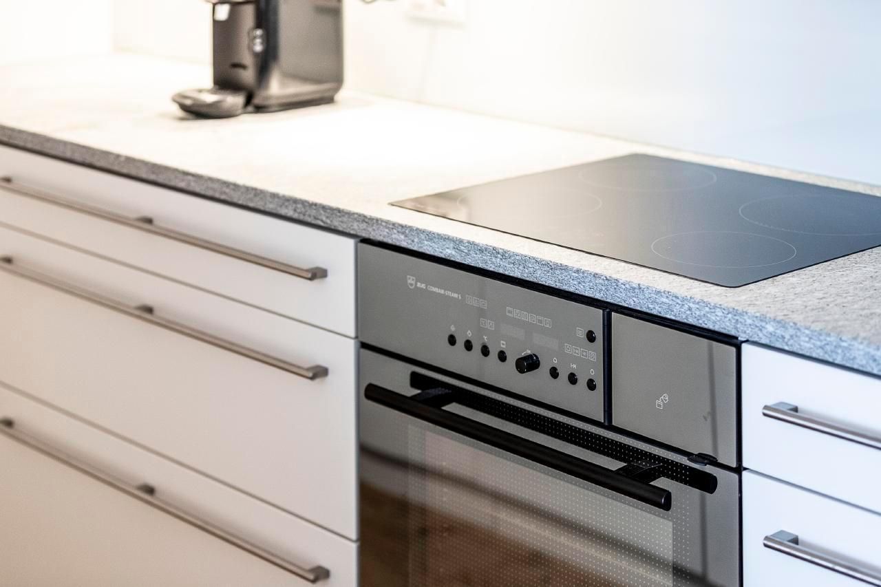 Die moderne Küche verfügt über Spülmaschine und Backofen mit Dampfgarerfunktion.