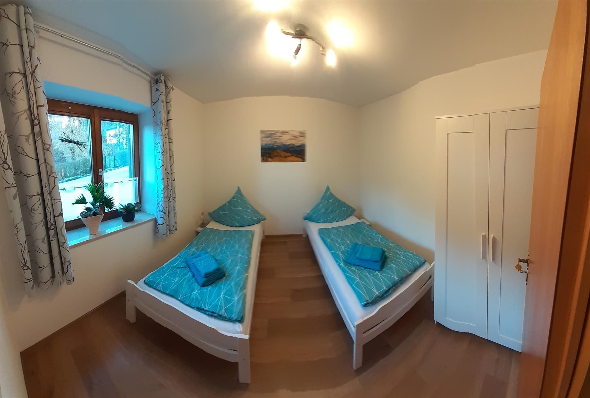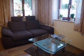 Unsere 53m² Ferienwohnung befindet sich im Erdgeschoss unseres Wohnhauses. 2019 wurde die liebevoll eingerichtete Wohnung komplett renoviert. Zum Wohnzimmer gehört eine Küchenzeile, die mit Spülmaschine, Elektroherd, Kühlschrank, Toaster, Wasserkocher, Filterkaffeemaschine und Tassimo-Kaffeemaschine ausgestattet ist. Ein großer Esstisch, sowie Couch und Flat-TV runden die gemütliche Atmosphäre ab. 2 Schlafzimmer (1 Doppelbett und 2 getrennte Betten, welche zusammengestellt werden können) bieten Platz für bis zu 4 Personen. Die 2 Bäder verfügen jeweils über Dusche, Waschbecken und WC. Auf der Gästeterasse, welche durch das große Schlafzimmer erreichbar ist, lässt sich der Tag in Ruhe ausklingen. Ein PKW-Stellplatz befindet sich direkt vorm Haus.