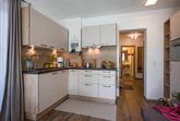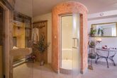 Ferienwohnung mit 2 Doppelzimmern, jeweils mit Balkon, einer Schlafcouch, 2 Badezimmern, Wohnküche, Blick zum Garten und auf die Bergwelt, Wellnessbereich mit Sauna, Dampfbad, Infrarotkabine und Ruheraum, Bademäntel und Handtücher sind inklusive.