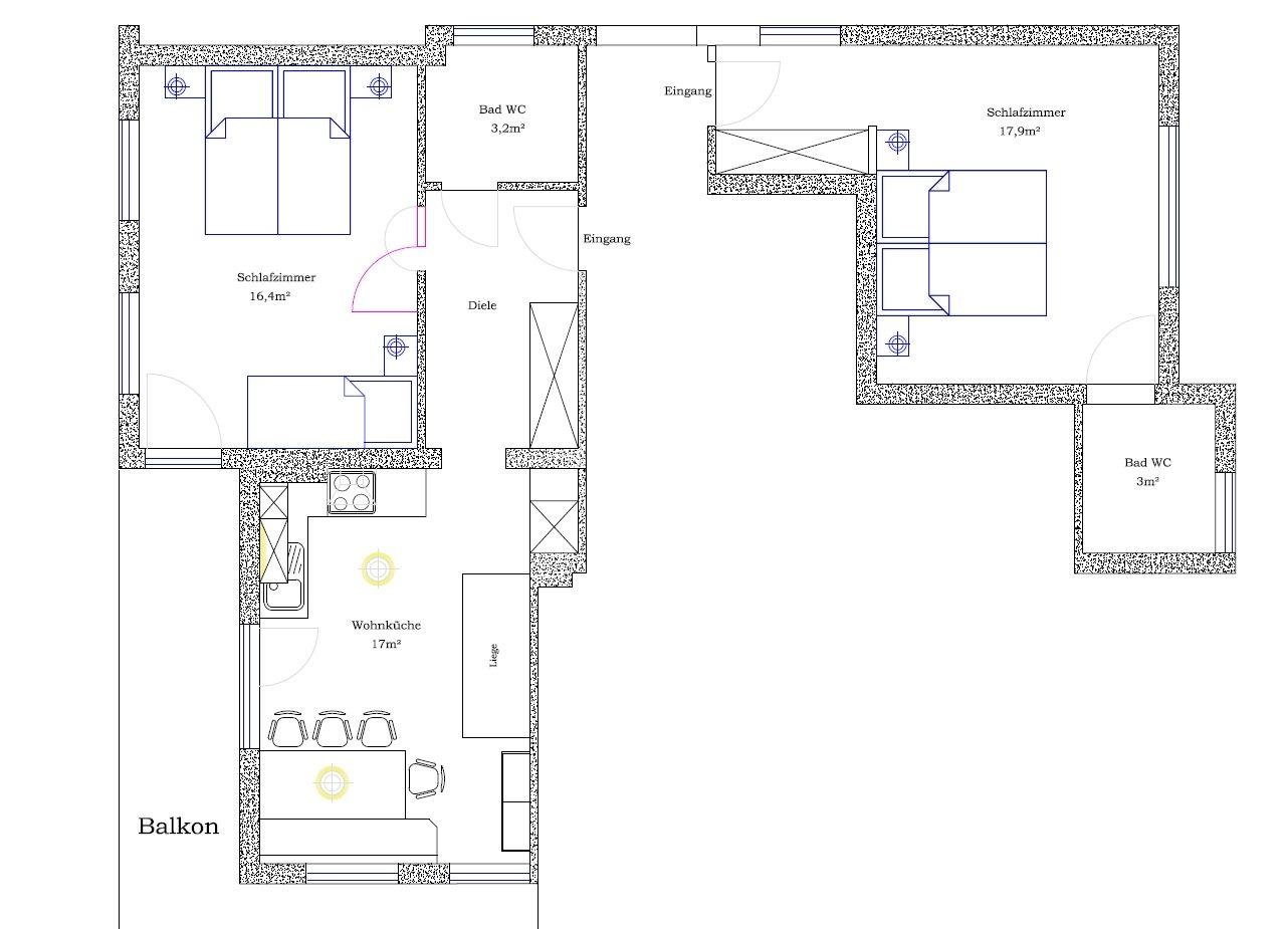 Schlafmöglichkeiten: Anzahl Doppelbetten (1,80m Breite): 2