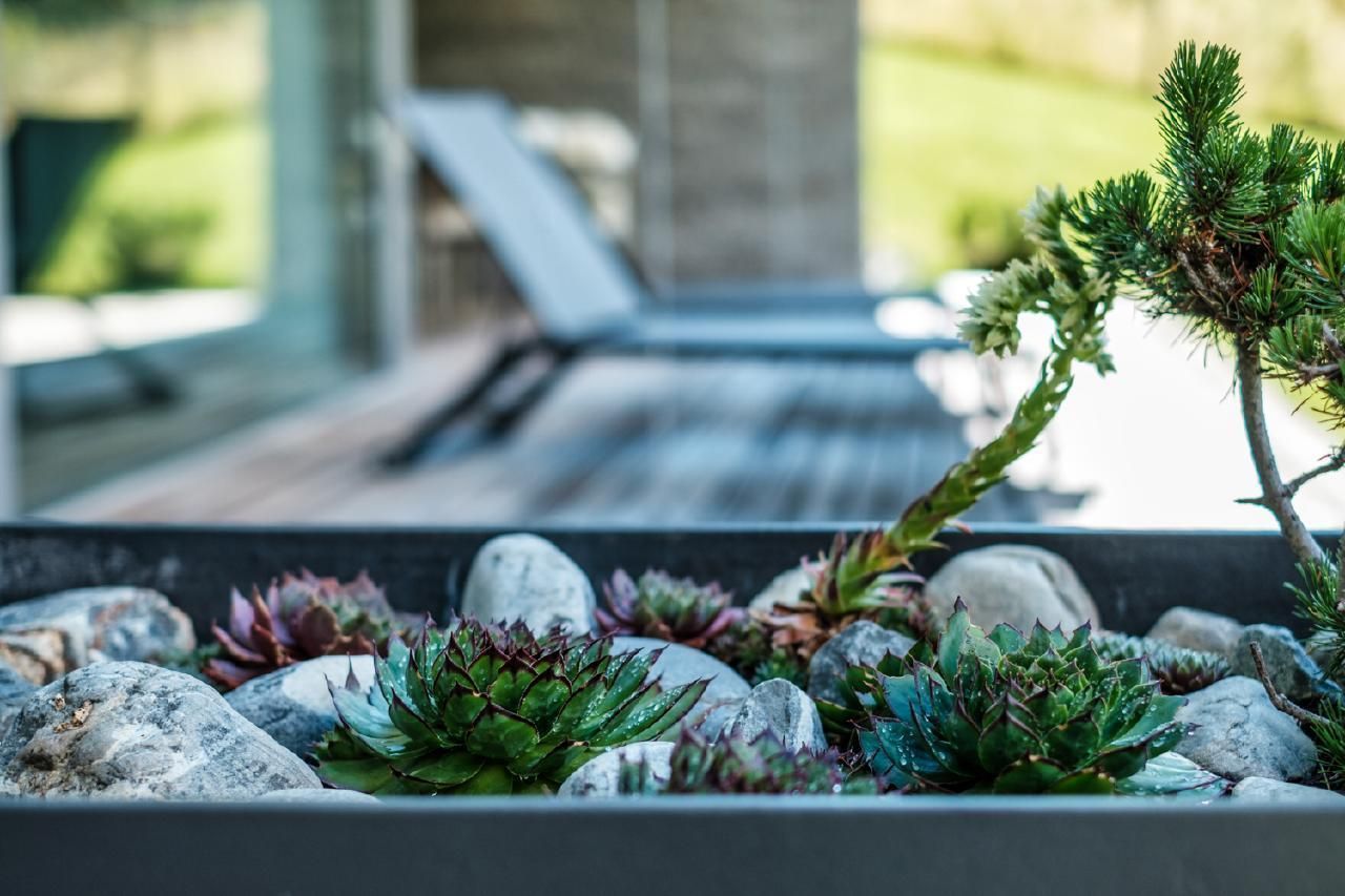 Der Außenbereich mit einer 30 qm großen Terrasse lädt zum Entspannen ein. Mit einem Gartentisch für 6 Personen und zwei Liegebetten können Sie hier die Sonne und den Blick in vollen Zügen genießen. Ein privater Ski- und Velo Raum sowie ein privat Parking in der Tiefgarage runden das luxuriöse Angebot ab und bieten Komfort und Sicherheit für Ihre Ausrüstung und Ihr Fahrzeug.