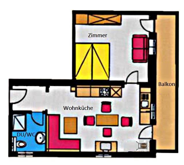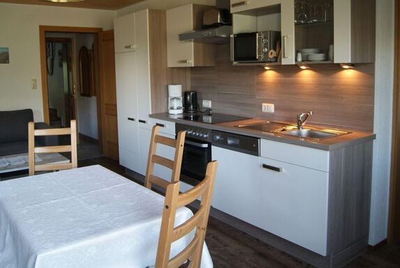 Unsere Wohnung Wenderkogel im ersten Stock eignet sich für 2-4 Personen und hat ca. 55 m². Sie verfügt über 1 Doppelzimmer, 1 Wohnküche mit TV, Schwedenofen, Schlafsofa, voll ausgestatteter Küchenzeile mit Essecke, 1 Badezimmer mit DU/WC. Balkon mit Hängesessel und Blick ins Tal.