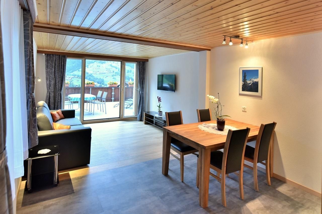 Flachbildfernseher und einen Esstisch für bis max. 4 Personen.